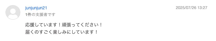2025/09/01 09:02こちらの活動報告は支援者限定の公開です。ご支援いただきました皆さまへ大切なお知らせ