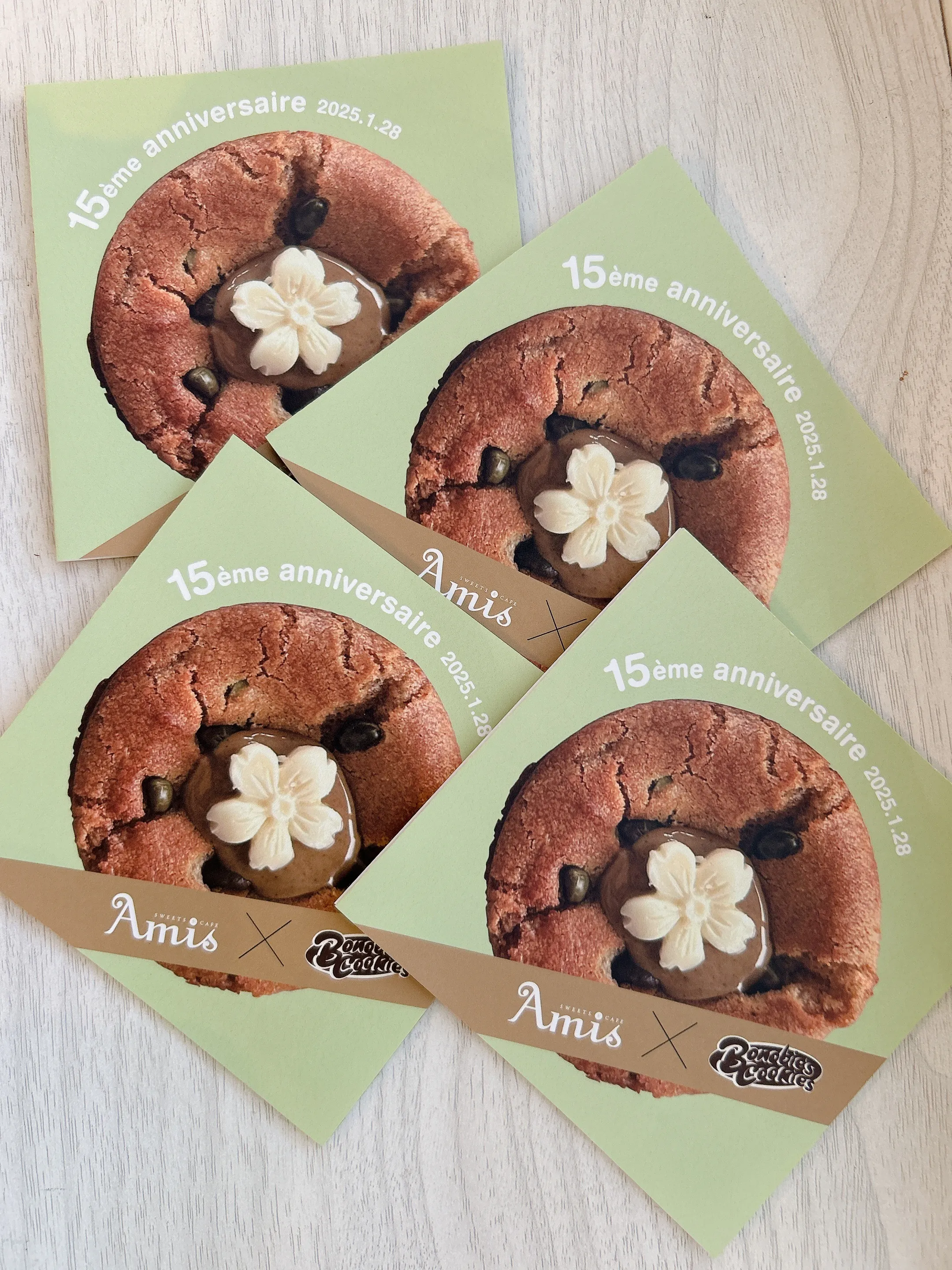 「Amis」では毎年、◯周年の記念月に、さまざまなお店やクリエーターさんとコラボをしてアニバーサリースイーツを提供してきました。そして2025年1月にお店の15周年を迎えるにあたり、思い切ってバティストさんにコラボレーションを依頼! なんと快諾して頂きました。