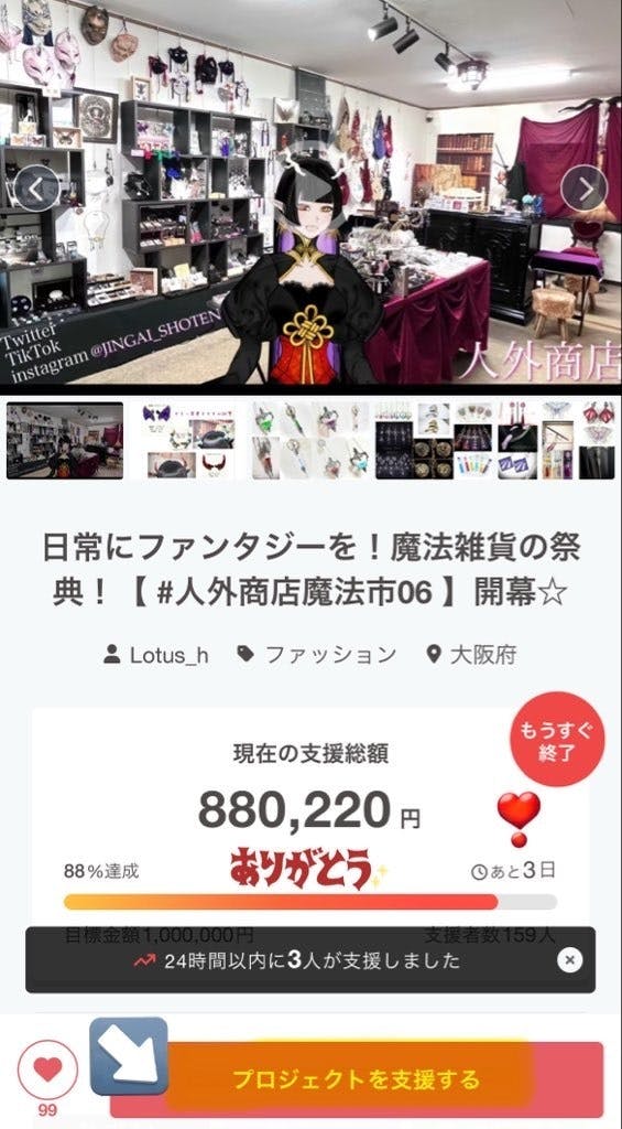 2025/12/28 09:00【 #人外商店魔法市06 】現在ラストスパート!!応援求む!https://camp-fire.jp/projects/878052/viewまず ここまで来れたのも皆様1人1人のお買物のおかげです!!ありがとうございます☆SNSの機能弱体化で苦戦した今回なのでここに辿り着けていることに店主はびっくりしています!wさて今期は特に アプリだと即落ちるほどのリターン数の多いクラファンとなりました!アクセサリーはもちろん推し活 概念コーデに使えるカラー指定や文字入れ可能なアイテムなどハンドメイド界隈に留まらずおそらくクラファン史上最強物量で挑んでおります!!31日23:59まで☆限定アイテムのオーダーメイドで自分ご褒美、推しへのプレゼント作家と一緒に創って楽しみましょ!!\ 拡げてほしいジャンルこの辺 /ハッシュタグで並べておきますので周りにいたら シェアしてください!ここまで来れたんだ!皆で達成したいよ!!最後まで!駆け抜けます!!ご協力 宜しくお願い致しますヾ(*TωT)ノ#魔法雑貨 #ファンタジー#ハンドメイドアクセサリー#推し活グッズ #ぬい活 #ぬい撮り #Y2K#ぬいポーチ #steampunk #TRPG #ゆめかわ#レザークラフト #シルバーアクセサリー#雑貨屋 #コスプレ #着物男子 #kawaii#ゴスロリ #ロリィタ #サブカル #着物女子 もっと見る