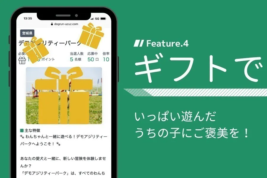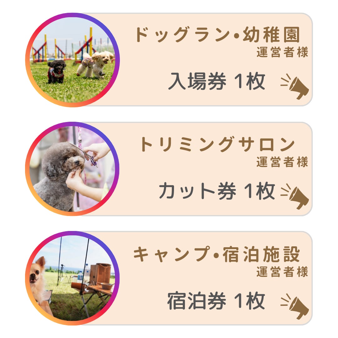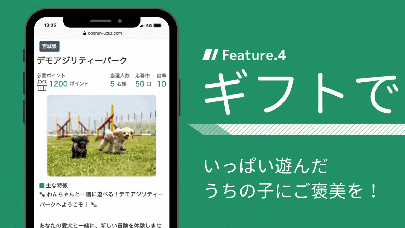 ギフト機能を使えば、ドッグフードや無料のドッグラン入場券、トリミングサービス券など、愛犬が喜ぶ特典を受け取るチャンス!