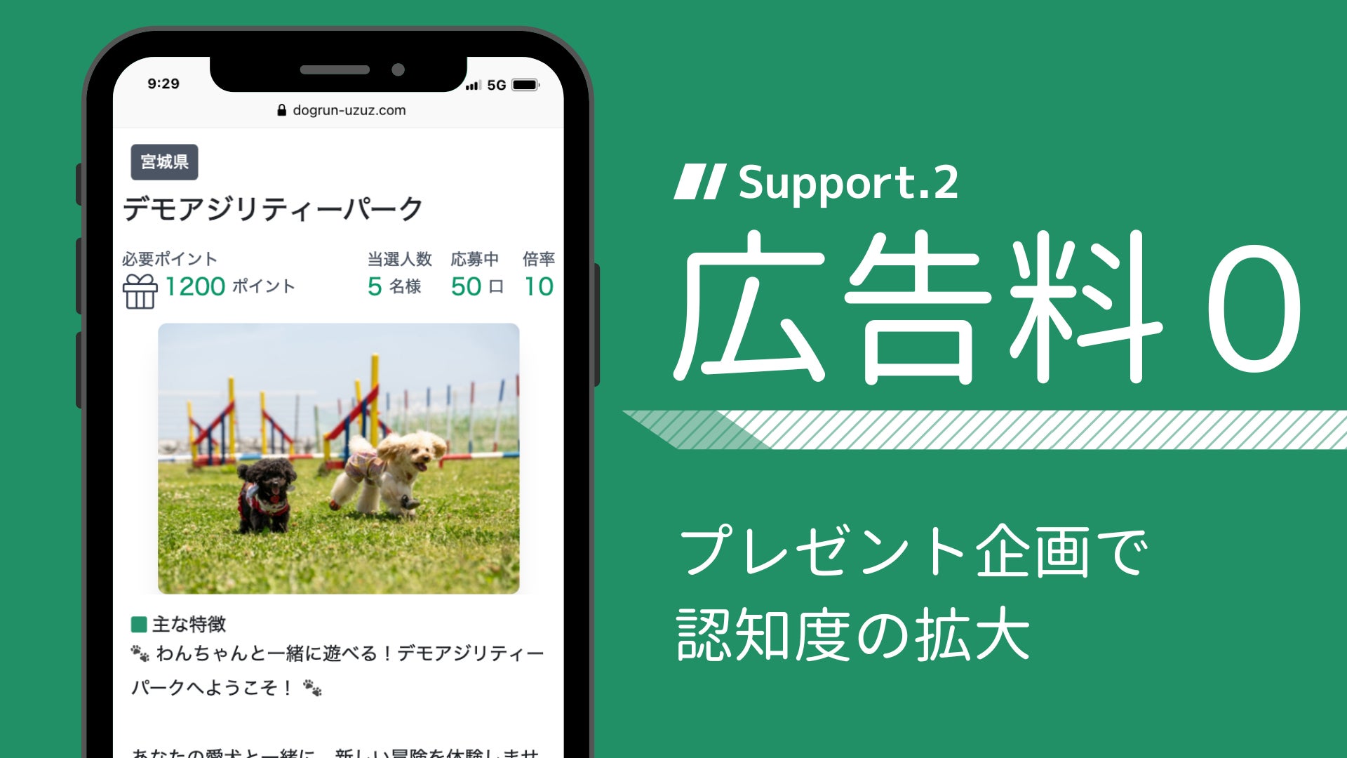 そんな思いからドッグランやドッグカフェ、トリミングサロン運営者に提供する3つのゼロ円サポート