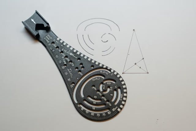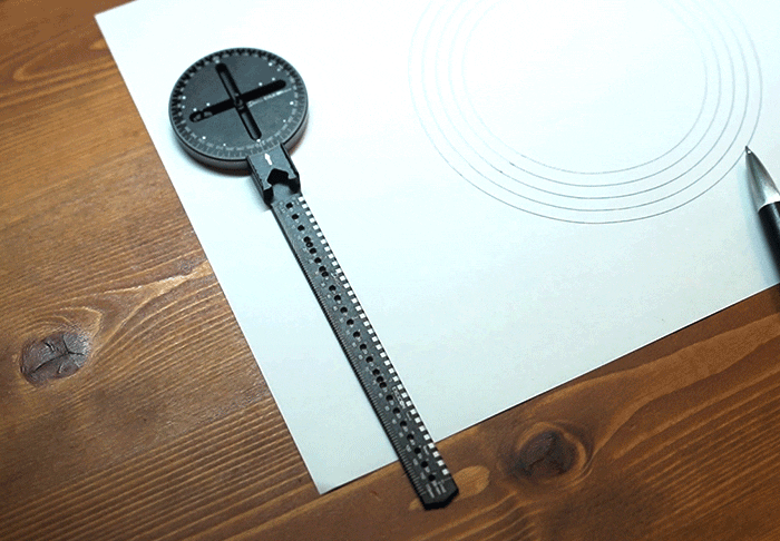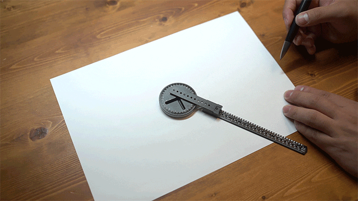 例えばベース部は360度の印字があるので、直線定規の矢印を使えば分度器のように使えます。三角形もしっかり角度を決めて描けました。