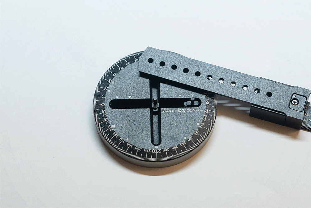ベース部の十字の溝には2本の突起があり、その2点に定規を取り付けてセット完了。