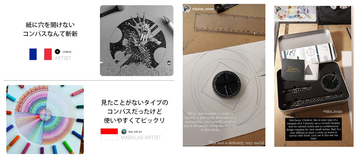 香港スマートデザインアワード金賞を受賞したこの製品は、スケールや定規、コンパス、分度器などが一体化し、職場や外出先でもアイディアが湧いたときにサッと使える便利なツールです。
