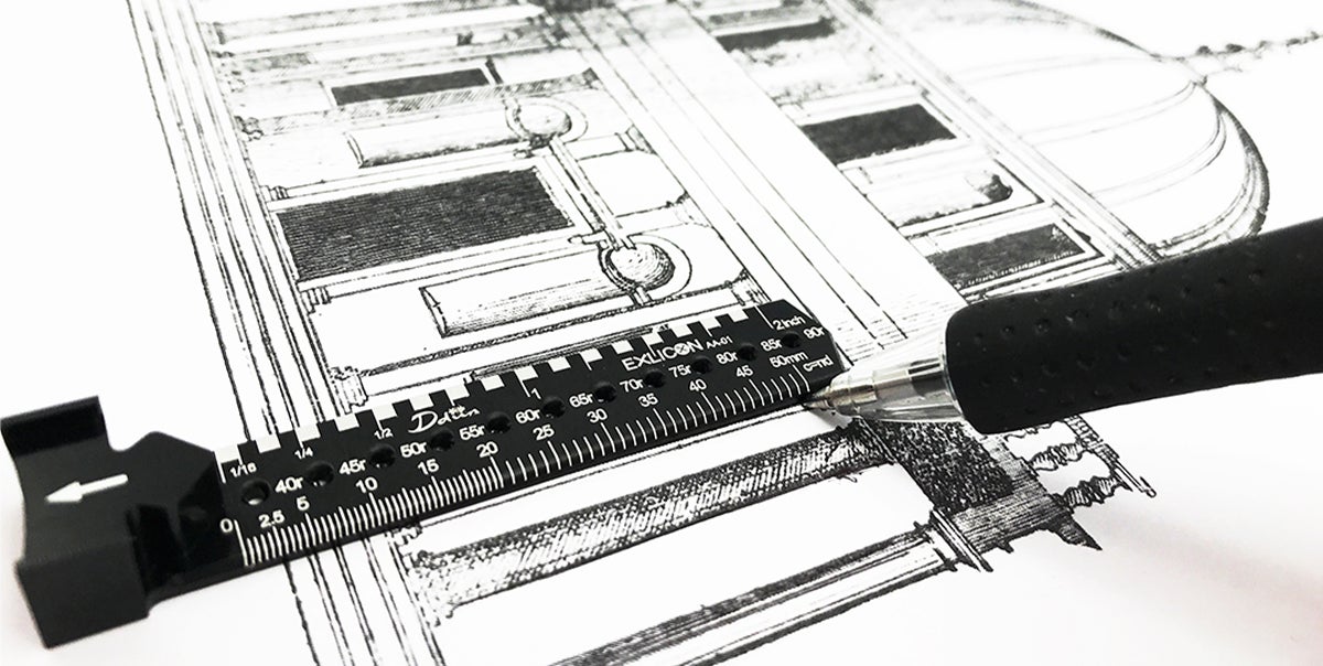 EXILICONの魅力の1つは黄金比でのさまざまな図形が作画できる水滴型の定規です!