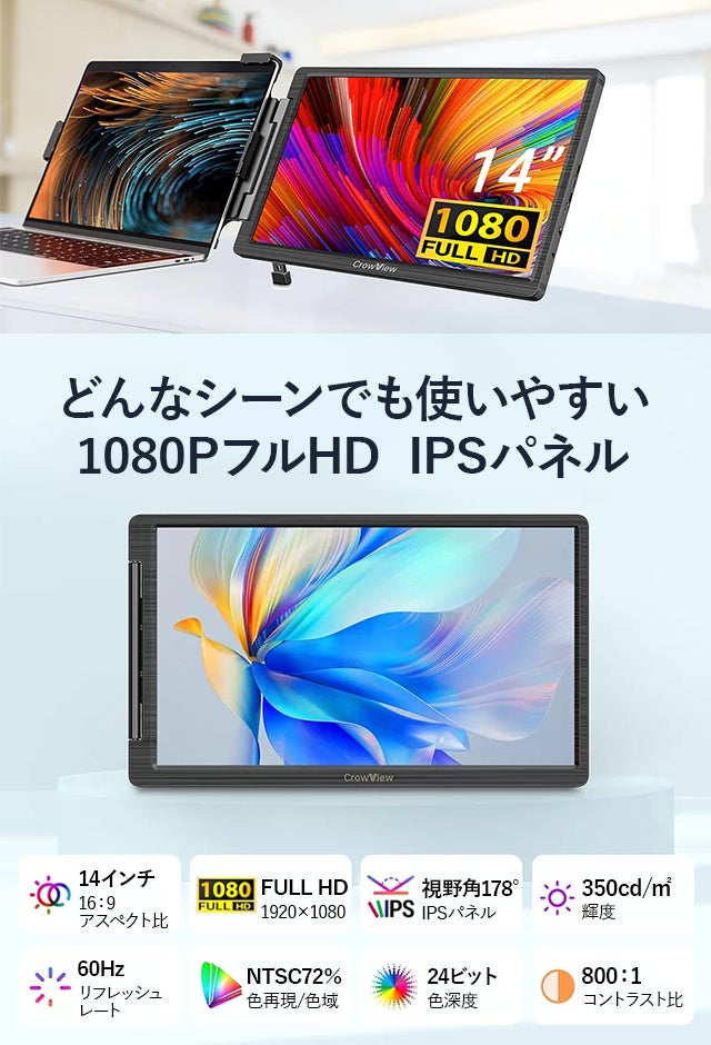 PCと一緒に持ち運べば、いつでもどこでもデュアルモニターで作業できます!