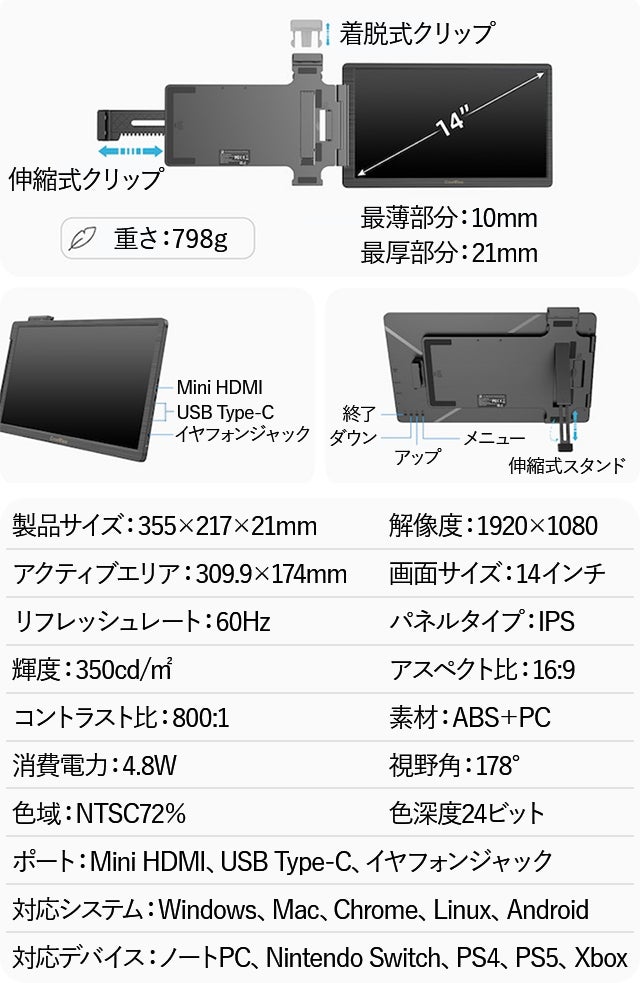 さらに、Switch、Sony PS4/PS5、およびXboxにも対応しており、いつでもどこでも大画面やデュアルモニターにしてゲームを楽しめます!