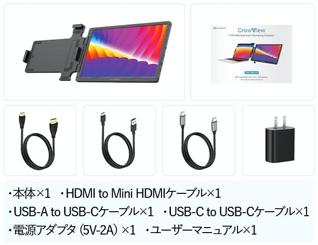 ③ Type-CケーブルをCrowViewとデバイスの両方に差し込んで接続したら使用可能です。