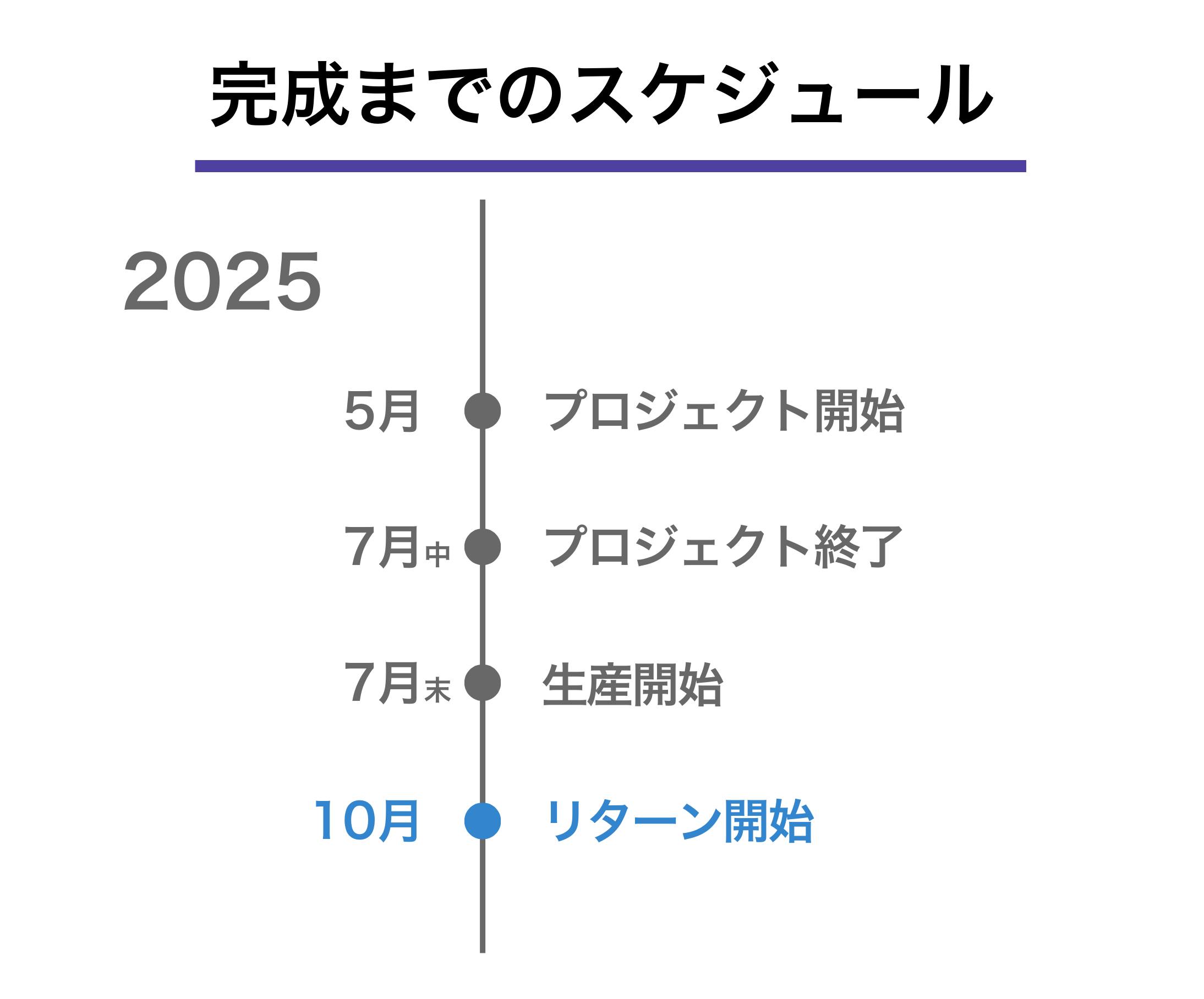 ※本文中に記載させていただいたスケジュールは、あくまでプロジェクト公開時点の予定です。クラウドファンディングを経て輸入を行う性質上、配送遅延のおそれがございます。