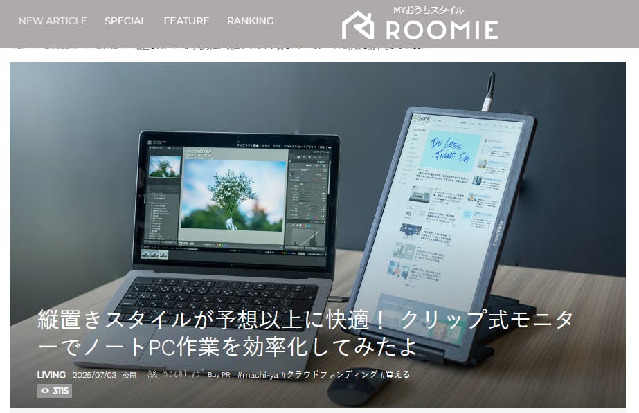 2025/07/13 21:00皆様、こんばんは!BRIGHT チームです。7月3日、Roomieで「CrowView」を紹介して頂きました。話題:縦置きスタイルが予想以上に快適! クリップ式モニターでノートPC作業を効率化してみたよ興味がある方、是非下記のリンクからアクセスしてみてください。https://www.roomie.jp/2025/07/1539652/【レビューの一部抜粋】〈底上げ系スタンドはNGノートPCのディスプレイ側に荷重がかかってしまいますが、「CrowView」自体にもスタンドを内蔵しているので安定感は十分でした。ただ、タイピング角度を調整するような底上げ系スタンドとの相性は残念ながら悪かったです。どうしてもモバイルモニター側に重心が寄って傾くので、モバイルモニター側を支える仕組みが無いと併用は難しいでしょう。〉ご興味のある方はこの機会をお見逃しなく!https://camp-fire.jp/projects/834685/view7月15日まで販売期間は続きますので、ぜひSNSでのシェアや身近な方にもおすすめしていただけると嬉しく思います。#crowview #elecrow #brightdiyどうぞよろしくお願い致します。BRIGHT チーム もっと見る