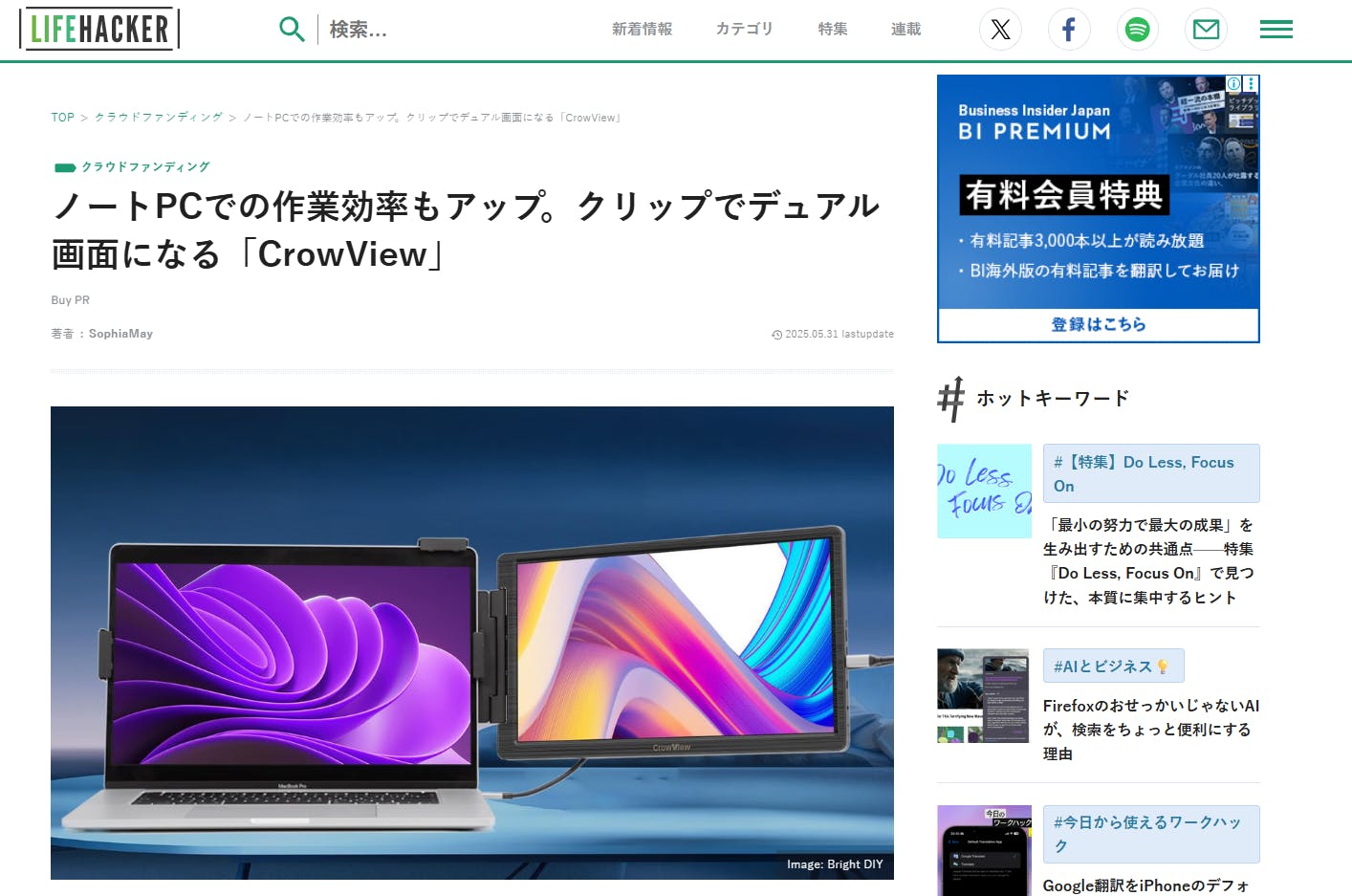 5月31日、Lifehackerで「CrowView」を紹介して頂きました。