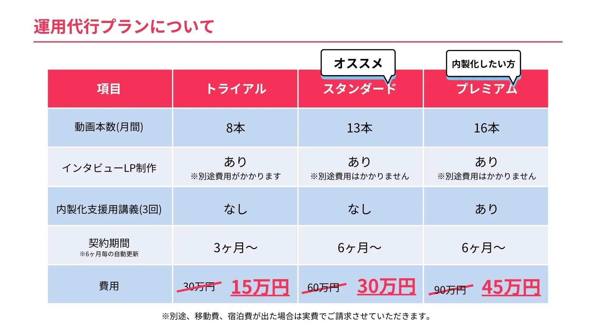 ・トライアルプラン→5万円/月×3ヶ月=¥150,000