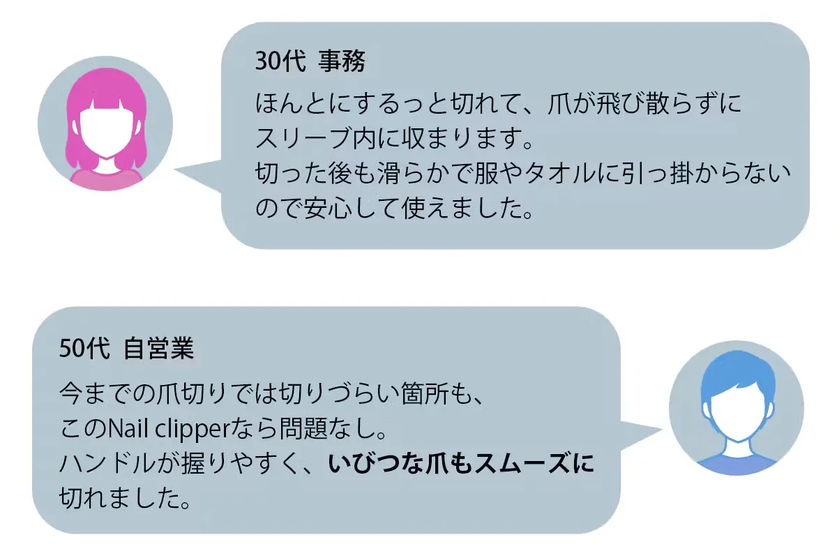 爪切りあるあるな課題点を一気に解消しています。