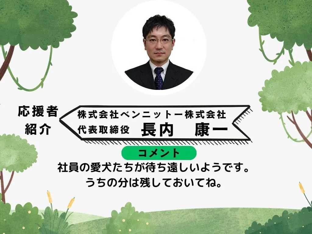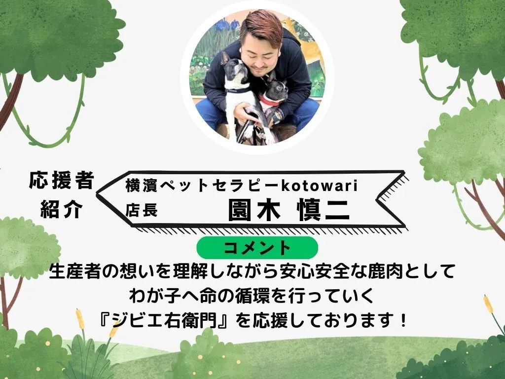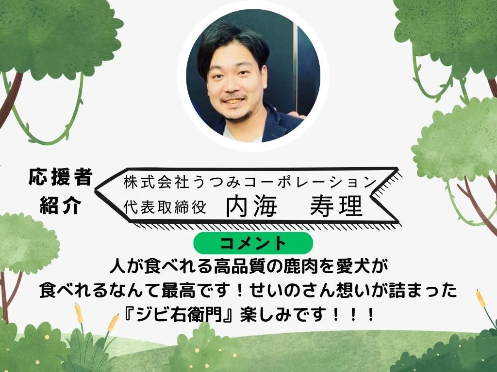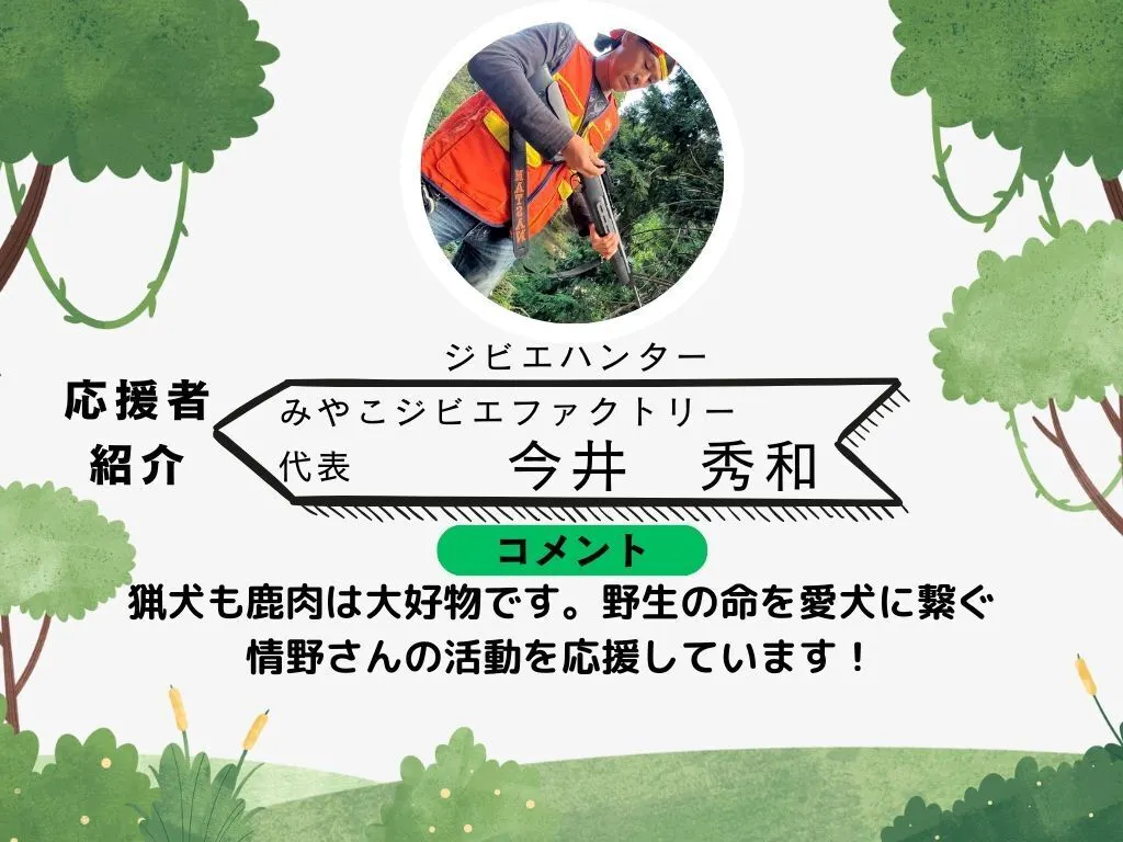 野生の鹿は、新鮮な草木を食み、渓流のきれいな水を飲み、山に守られて育った、栄養価の優れた自然の最高傑作です。広くこの素晴らしさを伝えていくことが、私の使命です。 鹿の命を次の命に伝え、犬と飼い主とが、末長く楽しく過すことを応援する商品開発を目指していきます!