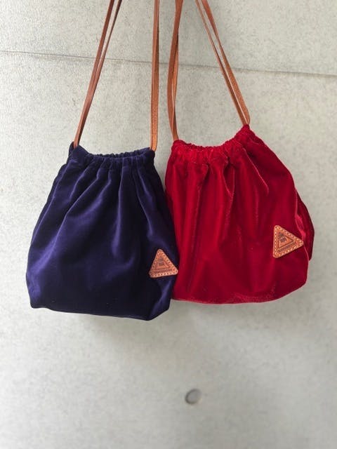 ベルベットの風合いと革ひもが高級感を演出してくれています。