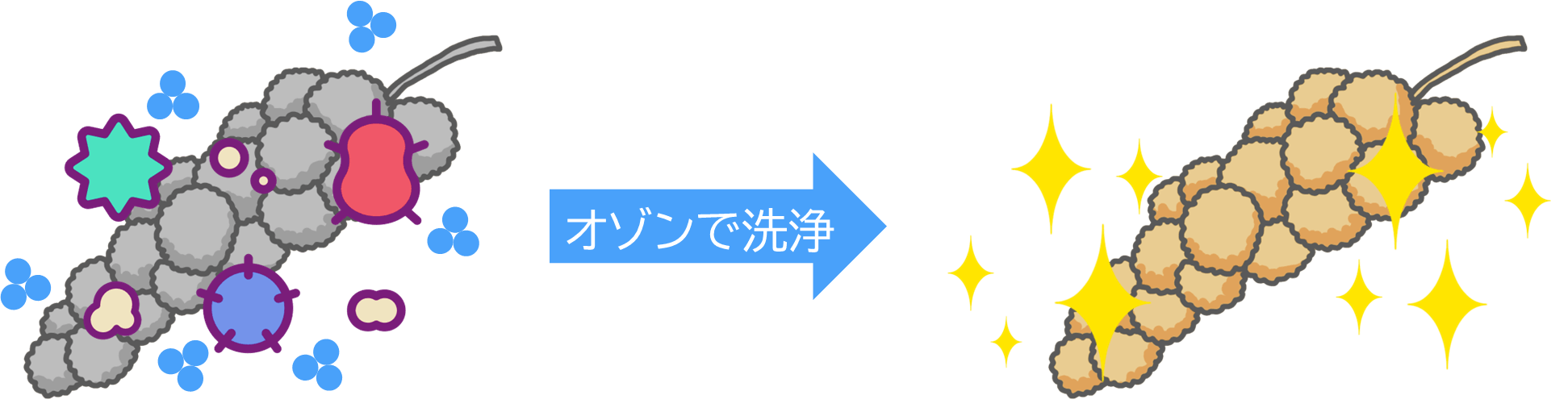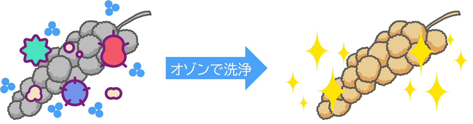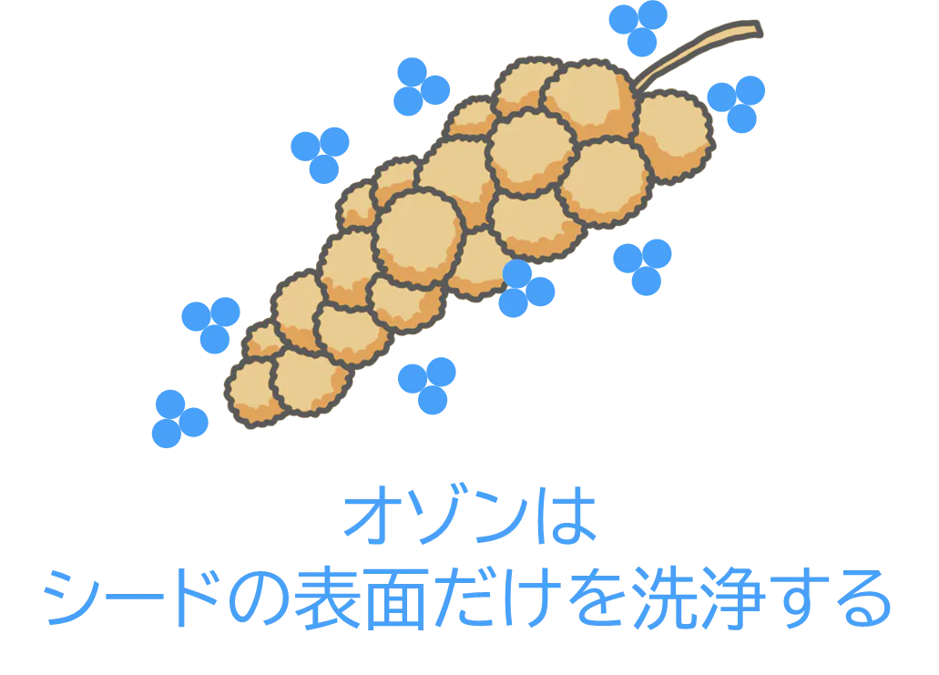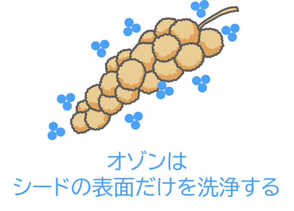 オゾンは3つの酸素が集まってできる気体で、酸素に紫外線を当てると発生します。シードの表面に付着するウイルスやカビを強い酸化力で破壊してくれます。ホテルの客室清掃でも、殺菌や消臭を目的としてオゾンが利用されることがあります。