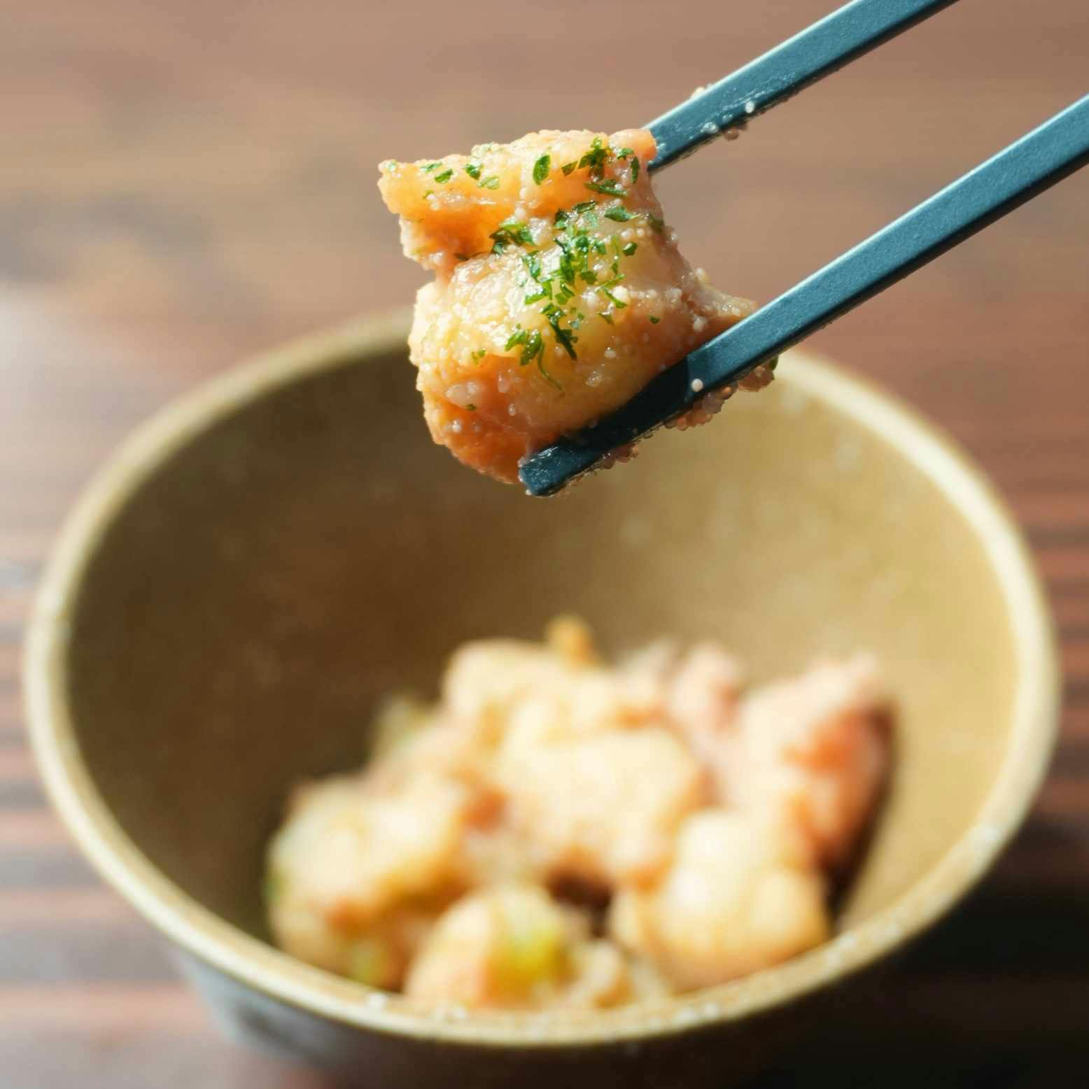 「もつ明太」にするもつは、脂身と皮のバランスで味も食感も変わるため、鮮度が特に大切です。当社では、鮮度を重視した独自の基準で20社以上ある仕入れの中から厳選し、最も味わいと食感のバランスが優れたものだけを仕入れています。