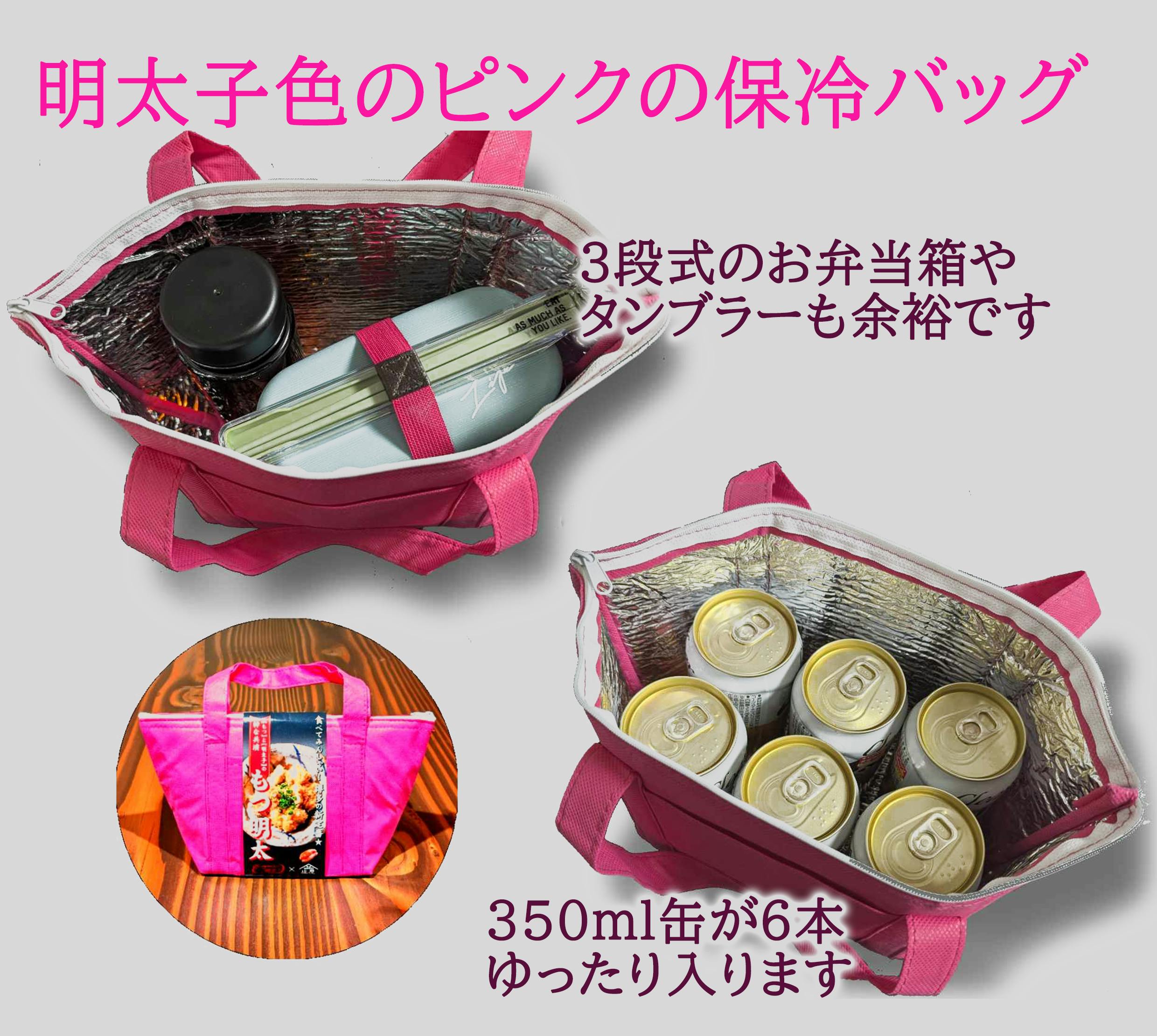 初めてお買い上げの方には、写真上部にある明太子色のピンクの保冷バッグでお送りします!