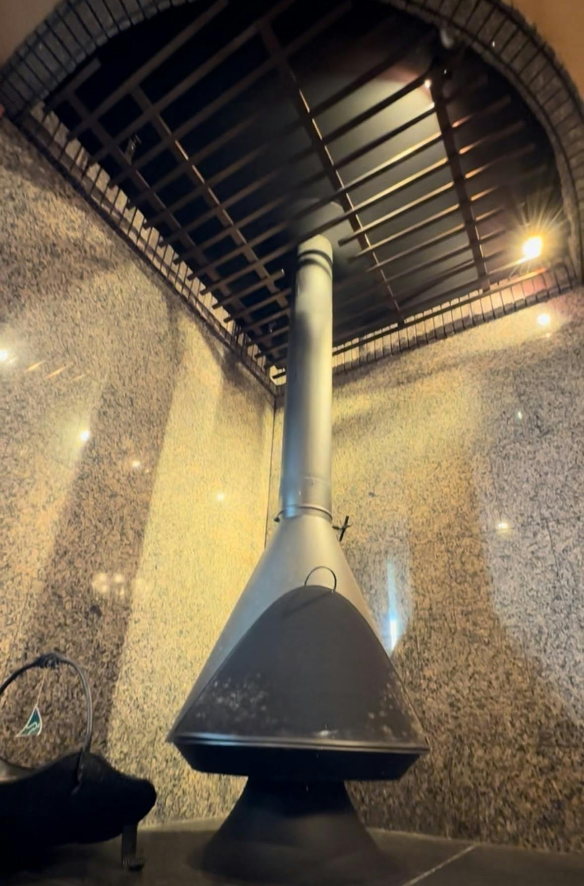 天井を見上げると、まるで芸術作品のような木の造形。