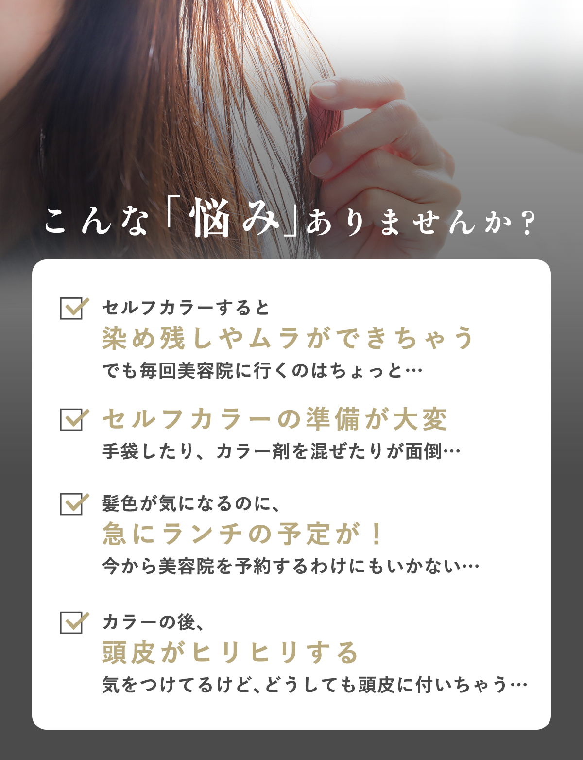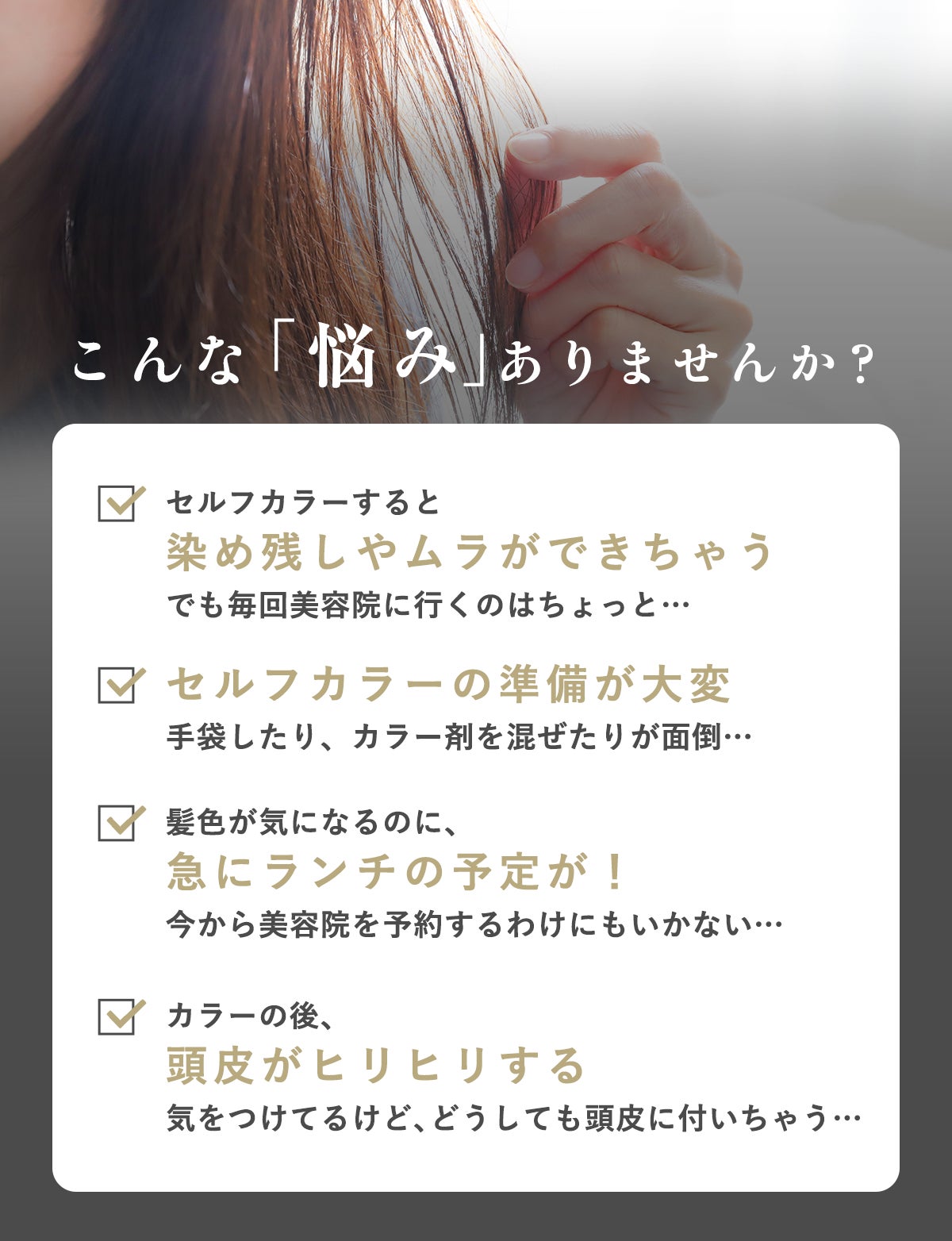 時間の融通が効かず、コストもかかるヘアサロンから卒業!ヘアカラーに縛られず、自分の時間を楽しんでください!