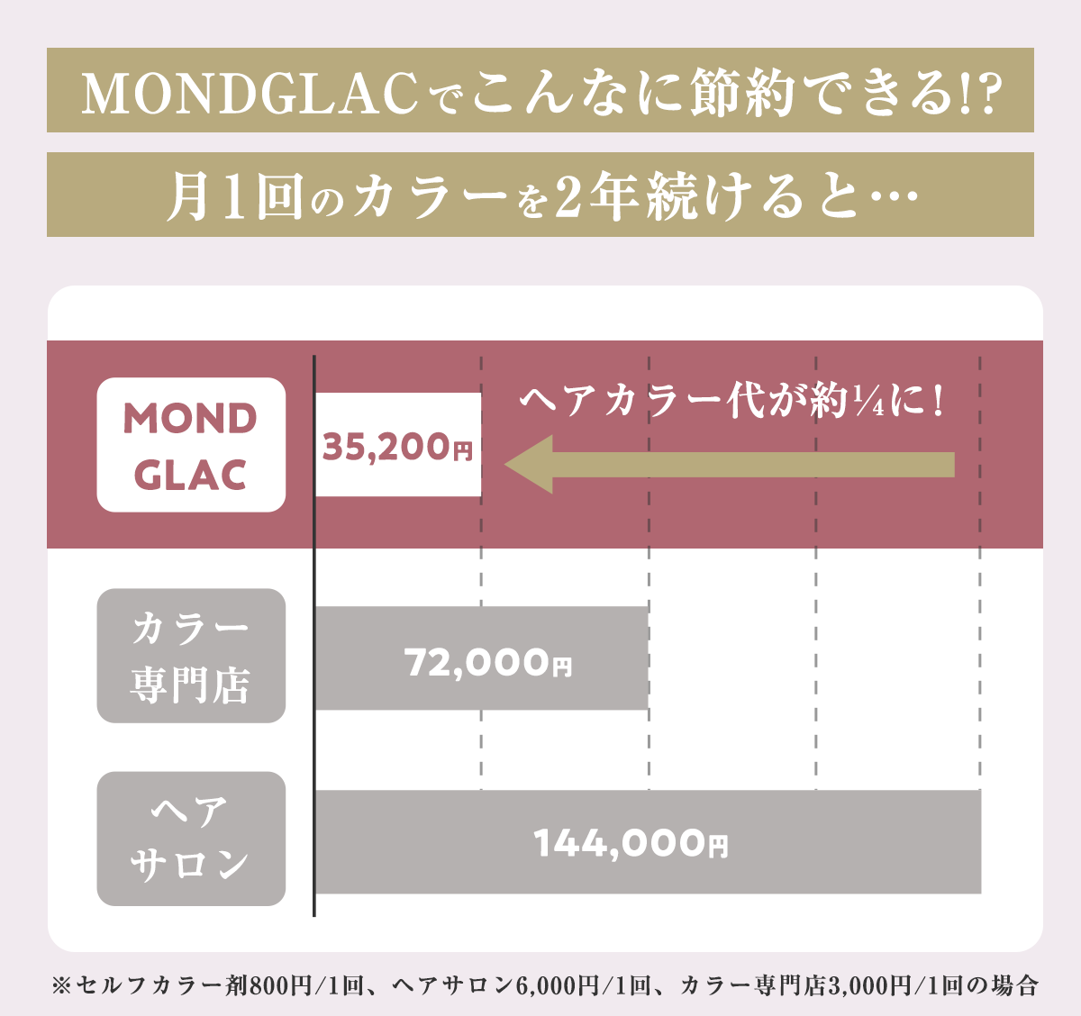 「MONDGLAC」があれば、自宅でプロ級のカラーリングができるので、時間もお金もかかるヘアサロンやカラー専門店に行かなくてもOK!