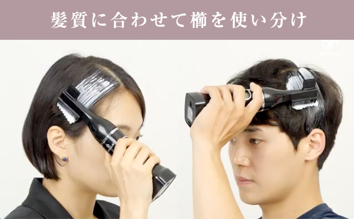 櫛はアタッチメント式で、付け替えが可能で、目の粗さの違う2種類の櫛が付属しています。髪質や用途に合わせて誰でも使い分けられるので、家に「MONDGLAC」が1つあれば、家族全員のカラーリングに使えます。
