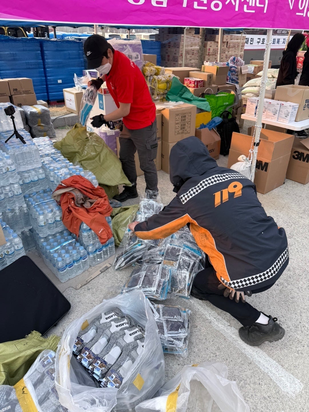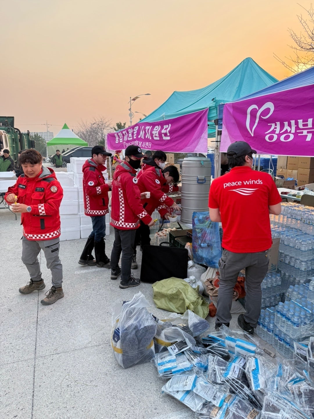 この事態を受け、ピースウィンズは、緊急支援チームを現地に派遣。避難所に行けない住民の方々や、懸命に消火活動を続けている消防隊員に向け、下着や靴下などの衣類のほか、飲食料を配布する支援を開始しています。