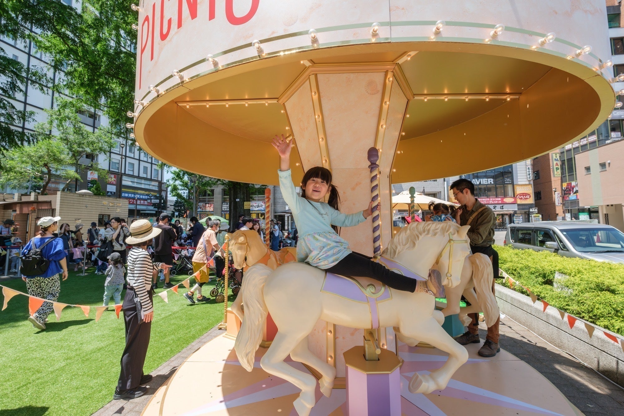 南口広場を、もう少し居心地のいい・楽しい場所にしたいという思いから、2024で初めてチャレンジしたメリーゴーランドの運行。今年も実施します。なるべく多くの人に「南口広場イケてる!」って思ってほしい。多くの人にとって大事な素敵な場所であってほしい。