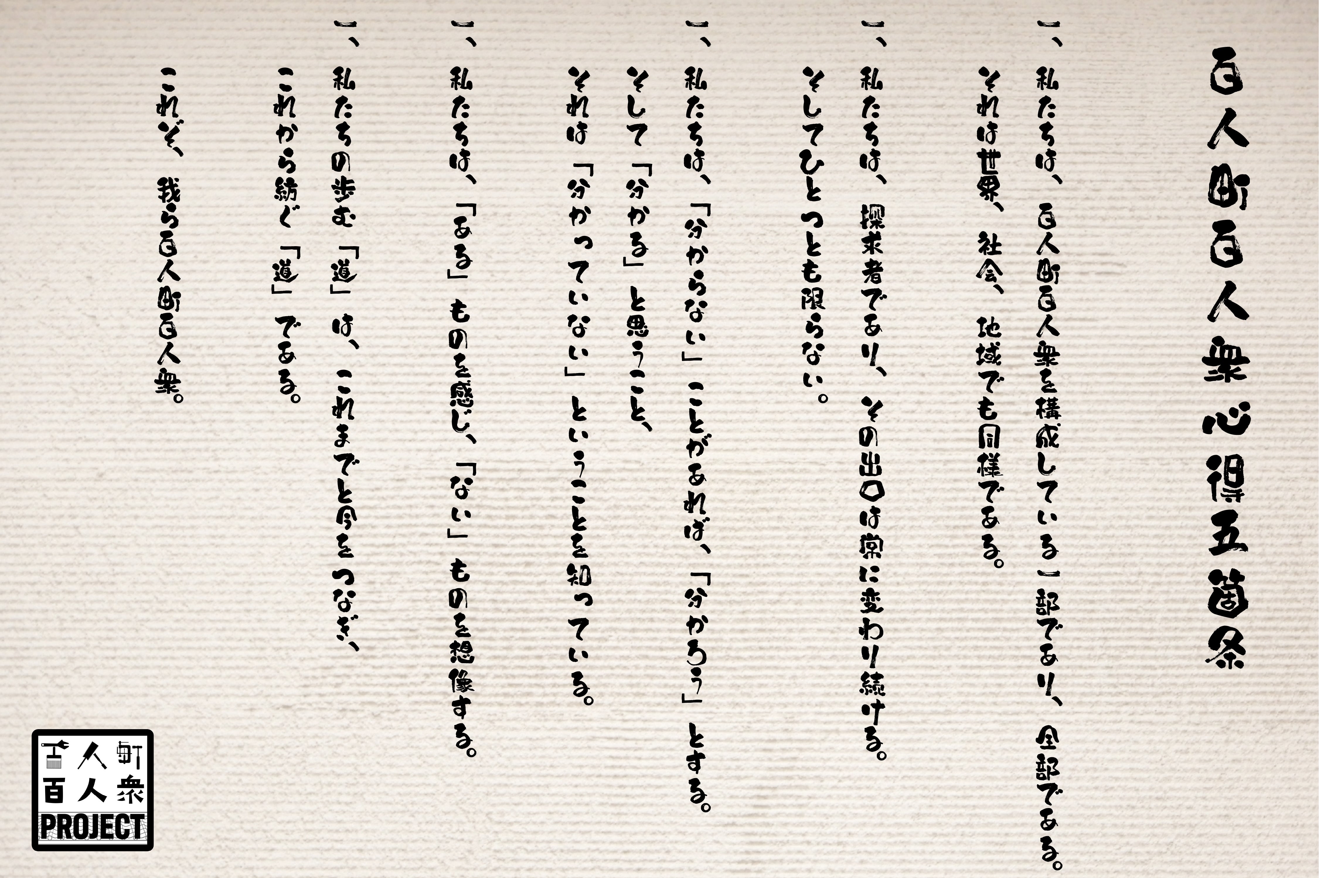 私たちはこの『百』という数字との偶然で奇跡的な出会いに感動し、これから『百』人の仲間を集めるプロジェクトを立ち上げました。