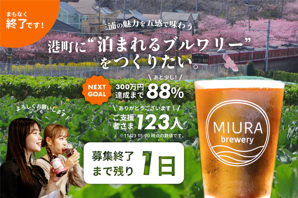 2025/11/24 12:11CAMPFIREも本日が最終日!!当プロジェクトに携わって頂いた関係各所の方々、またこれまでご支援して頂いた120名以上の方々に心より感謝申し上げます。セカンドゴールも達成率90%まできました。目標まであと少しです、最後のご支援どうぞよろしくお願い致します。セカンドゴールの目的は滞在中の行動範囲の拡大と快適性の向上ですが、自転車メーカーはGIANTに決定し、寝具は数多くの寝具を試してみた結果、最終的にエマスリープとテンピュールに決定しました。同時に羽毛布団も導入することにしました。「三崎、城ヶ島、油壺、三浦海岸から構成される私のお大好きな4地域の魅力を一人でも多くの方の伝えるためにブルワリーとして何ができるか」、この問題提起からスタート当プロジェクトですが、いよいよこれからが正念場です。ぜひ皆様のご意見やご要望を現場に反映させていきたいと思いますので、引き続きご協力のほどよろしくお願い申し上げます。 もっと見る明日終了です!!