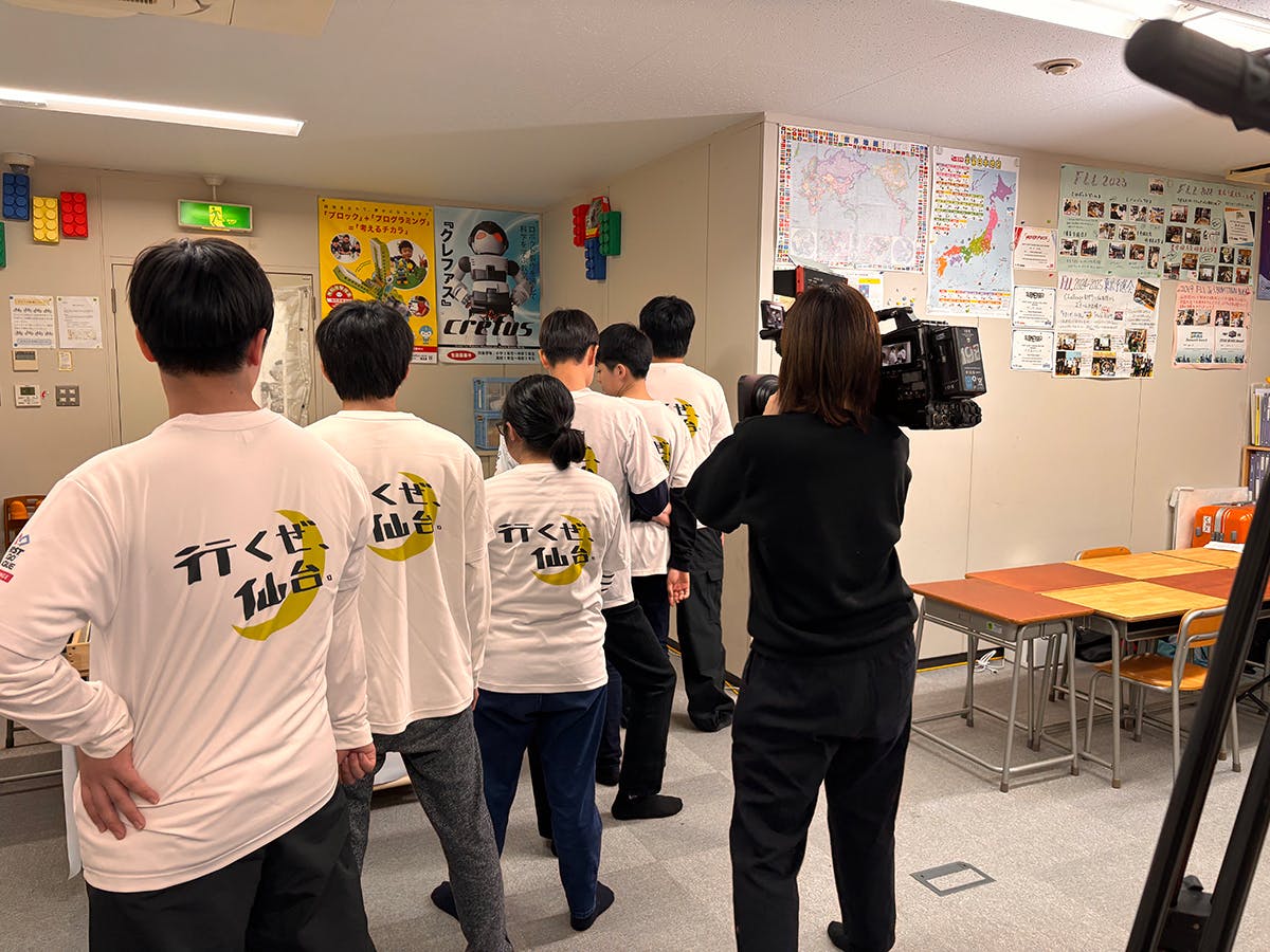 ミヤギテレビの長寿番組で今年30周年を迎えた「OH!バンデス」です。吉見アナウンサーにお越しいただき、ロボットパフォーマンスやプログラミング、イノベーションプロジェクトについて、メンバーが我こそはとおしゃべりしまくっている中、番組制作スタッフのみなさんが丁寧に対応していただき、2時間きっちり収録していました。