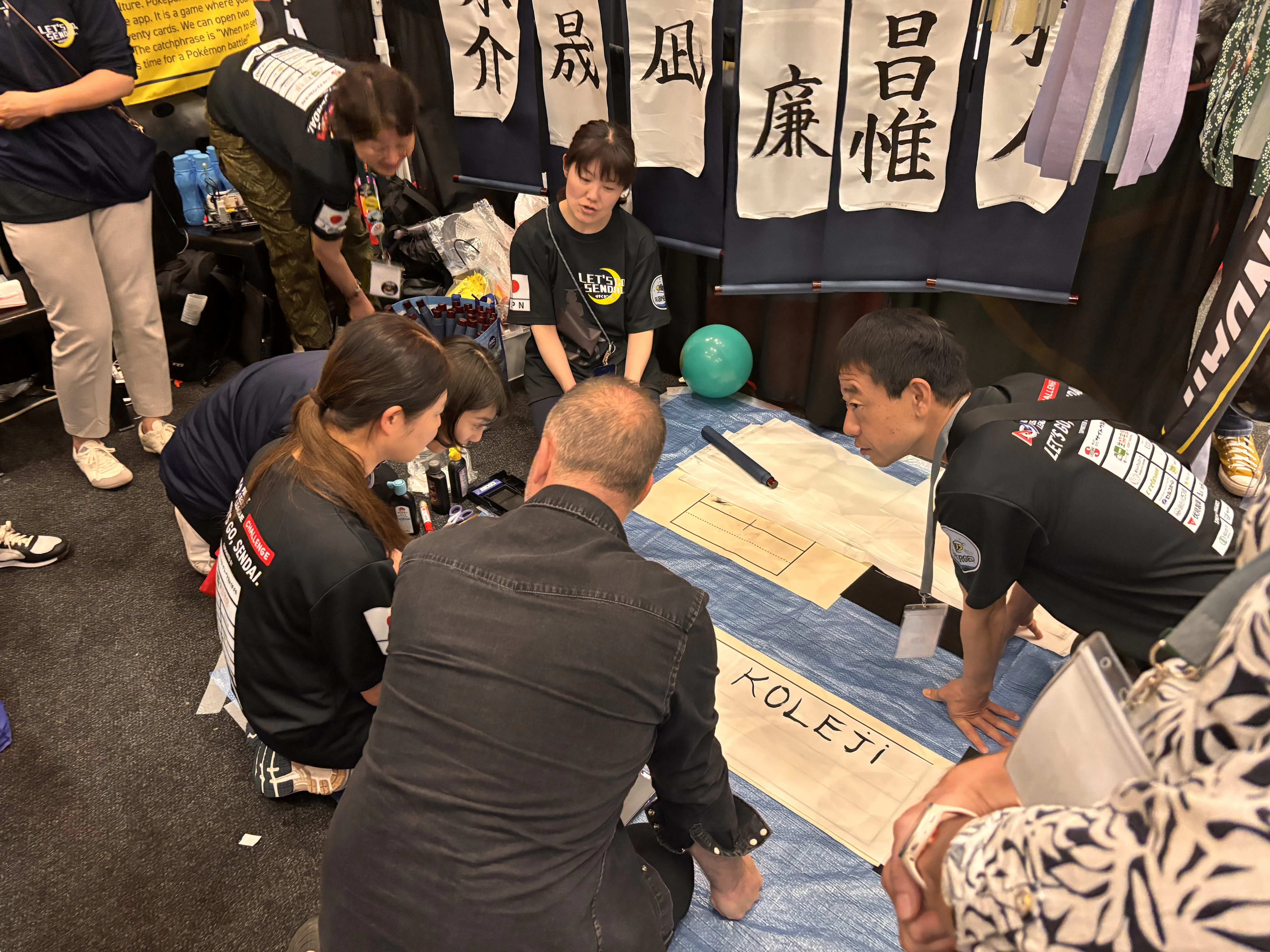 ピットでは習字をテーマに各国の方に筆を持ってもらい自国の文章や日本語を書いてプレゼントしました。