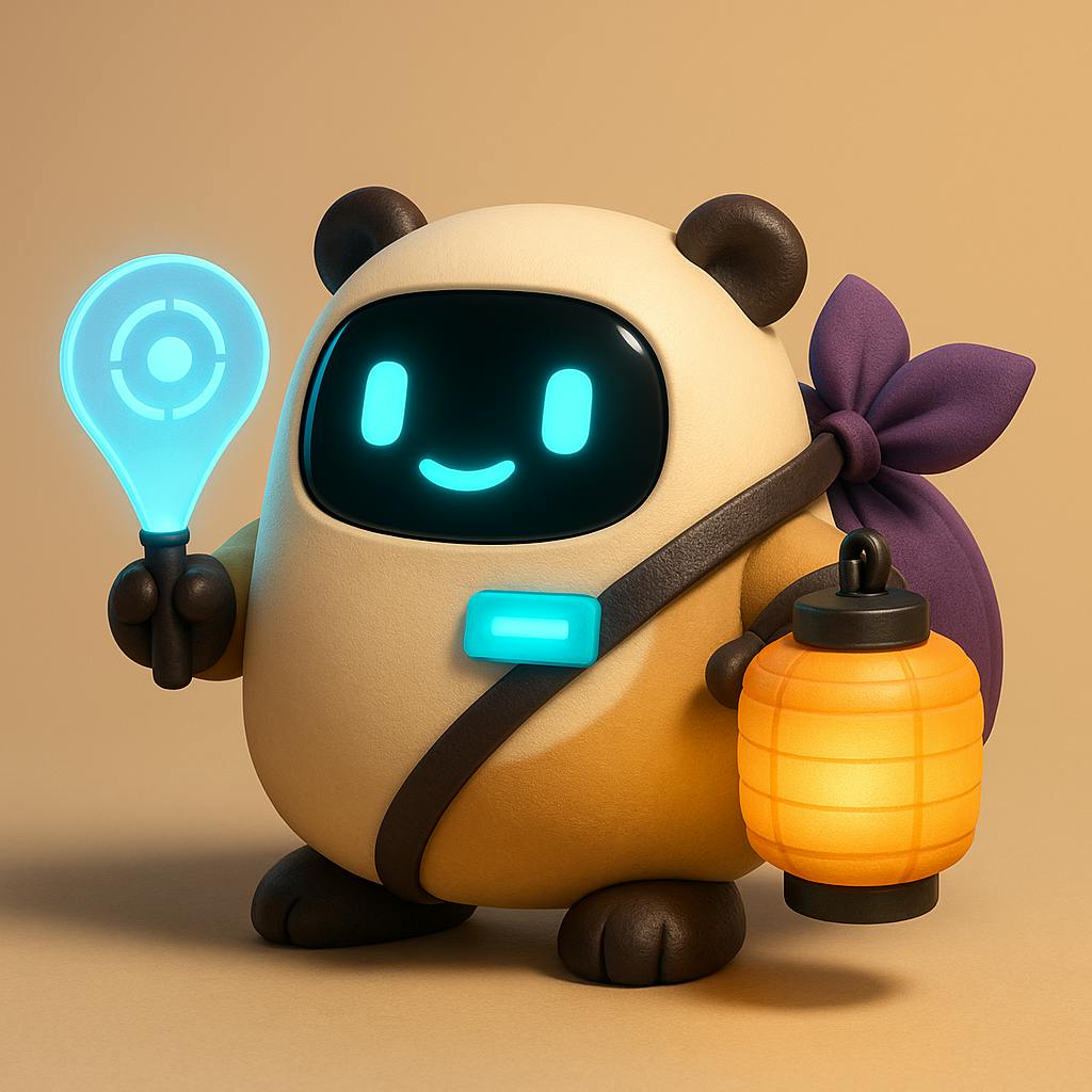 にっこり笑顔の忍者ロボ風キャラクターとして、みなさまを未来へ導く ナビゲーター の役目を担っておる。