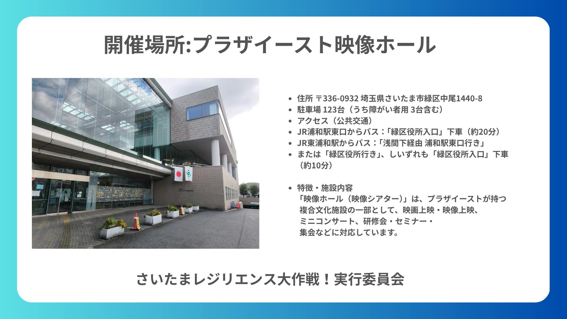 上映会会場およびチケット発行は、主催である さいたまレジリエンス大作戦!実行委員会 が責任をもって実施いたします。