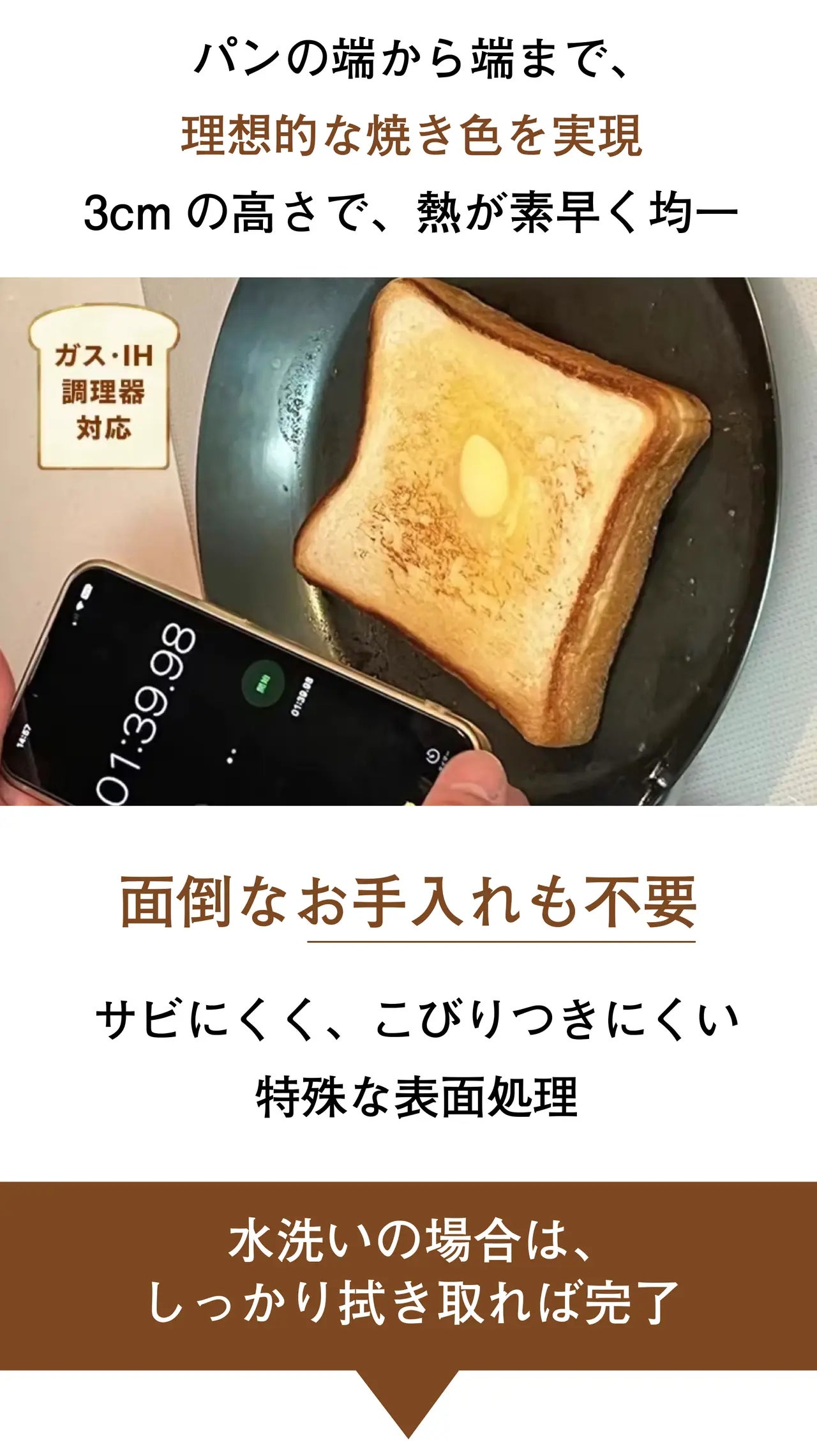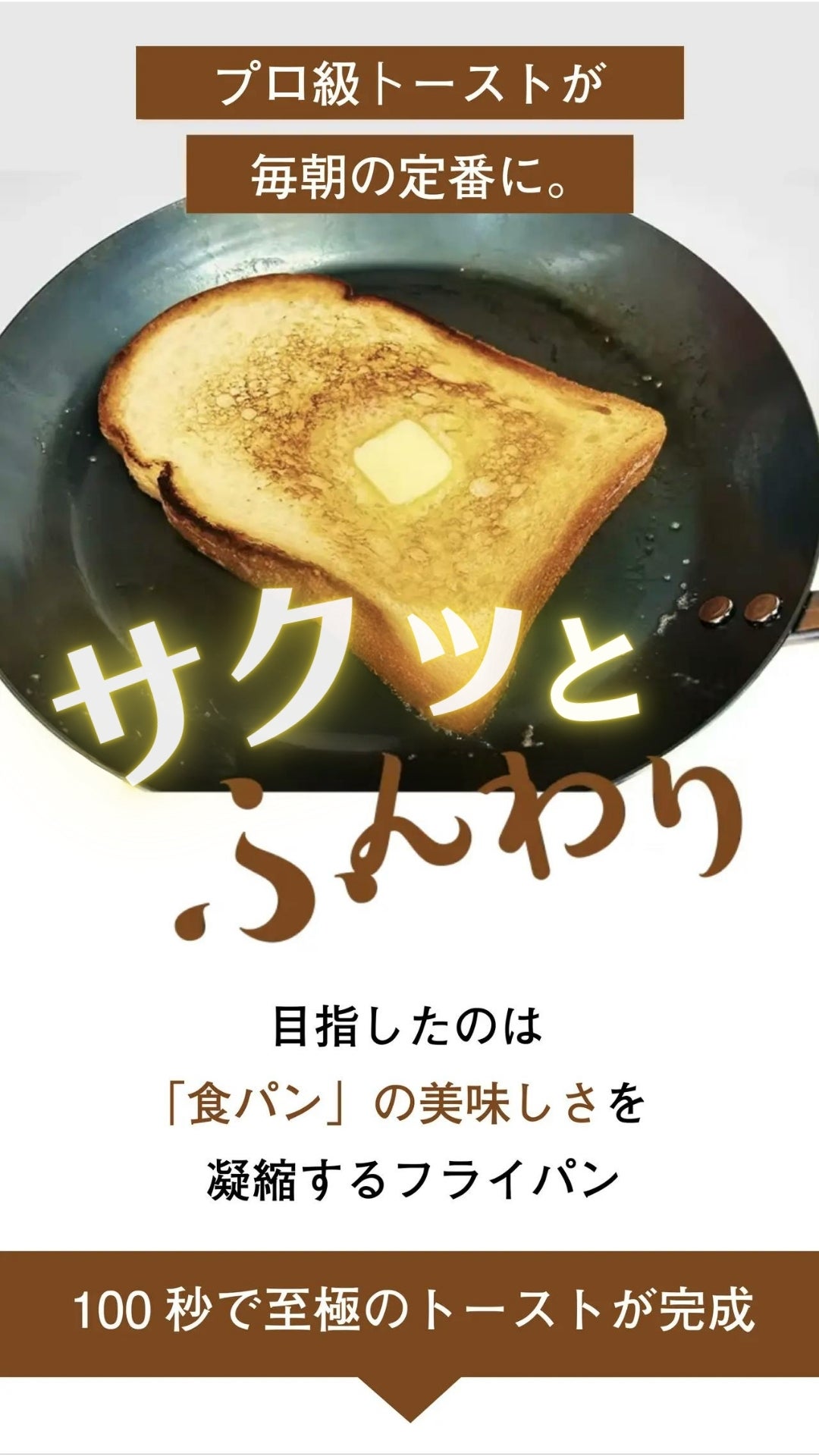この食パン専用鉄フライパンは、 たった100秒で特別な朝食体験を提供し、