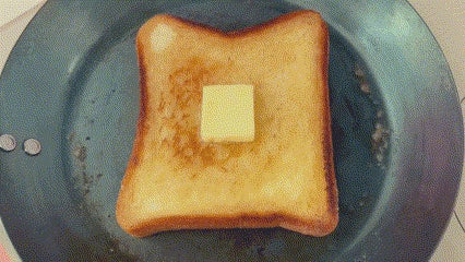バターは最初に溶かして両面になじませる、もしくは焼きあがってきたあたりでのせるのがお勧めです。