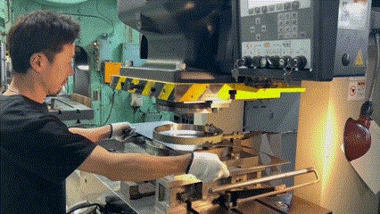 ②フライパンの形状に整えたのち、藤田金属独自の「ハードテンパー加工」を行います。