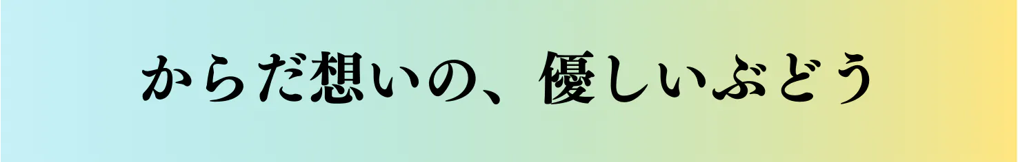 私たちのぶどうは、甘くてジューシー。お年寄りから赤ちゃんまで、誰もが安心して口にできる優しさを目指しています。