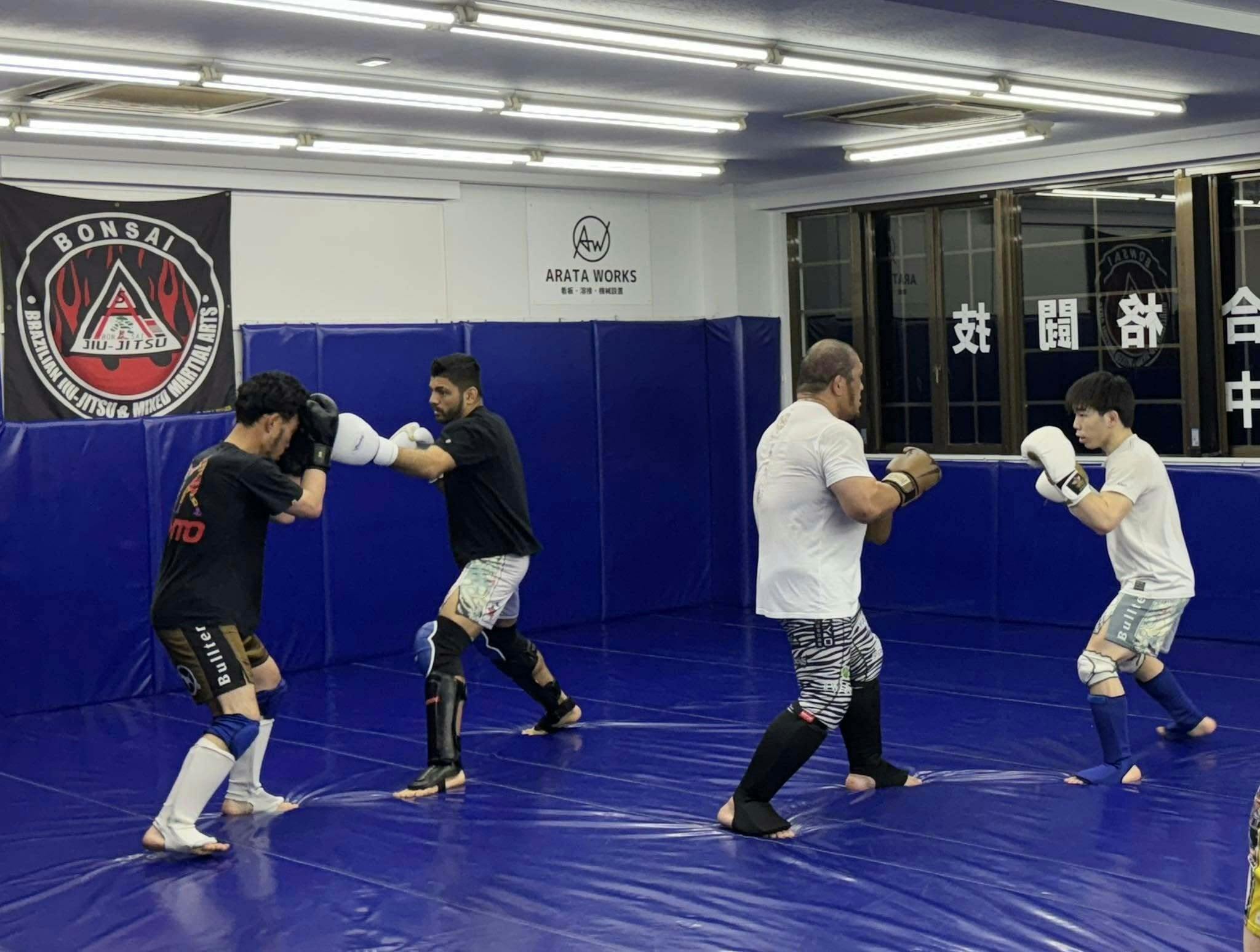練習を見学させていただきましたが、どの選手もコンディションは抜群。ボンサイ柔術では、なんと現RIZIN王者・サトシ選手が練習に来ており、その存在感に一同びっくり。しかし非常に気さくで親切に接してくださり、改めて格闘技コミュニティの温かさを感じました。