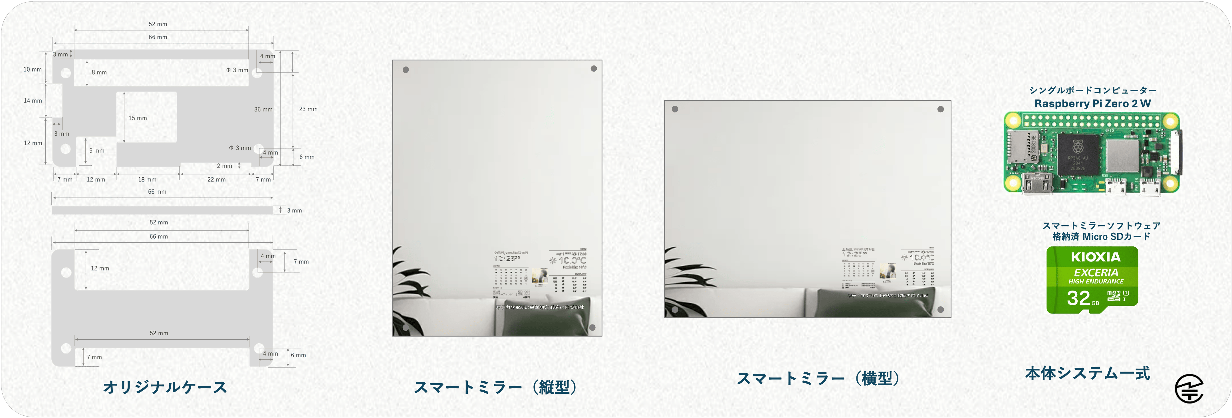 ミラーを制御するコンピューター本体(Raspberry Pi Zero 2 W/WH) 用オリジナルケースです。