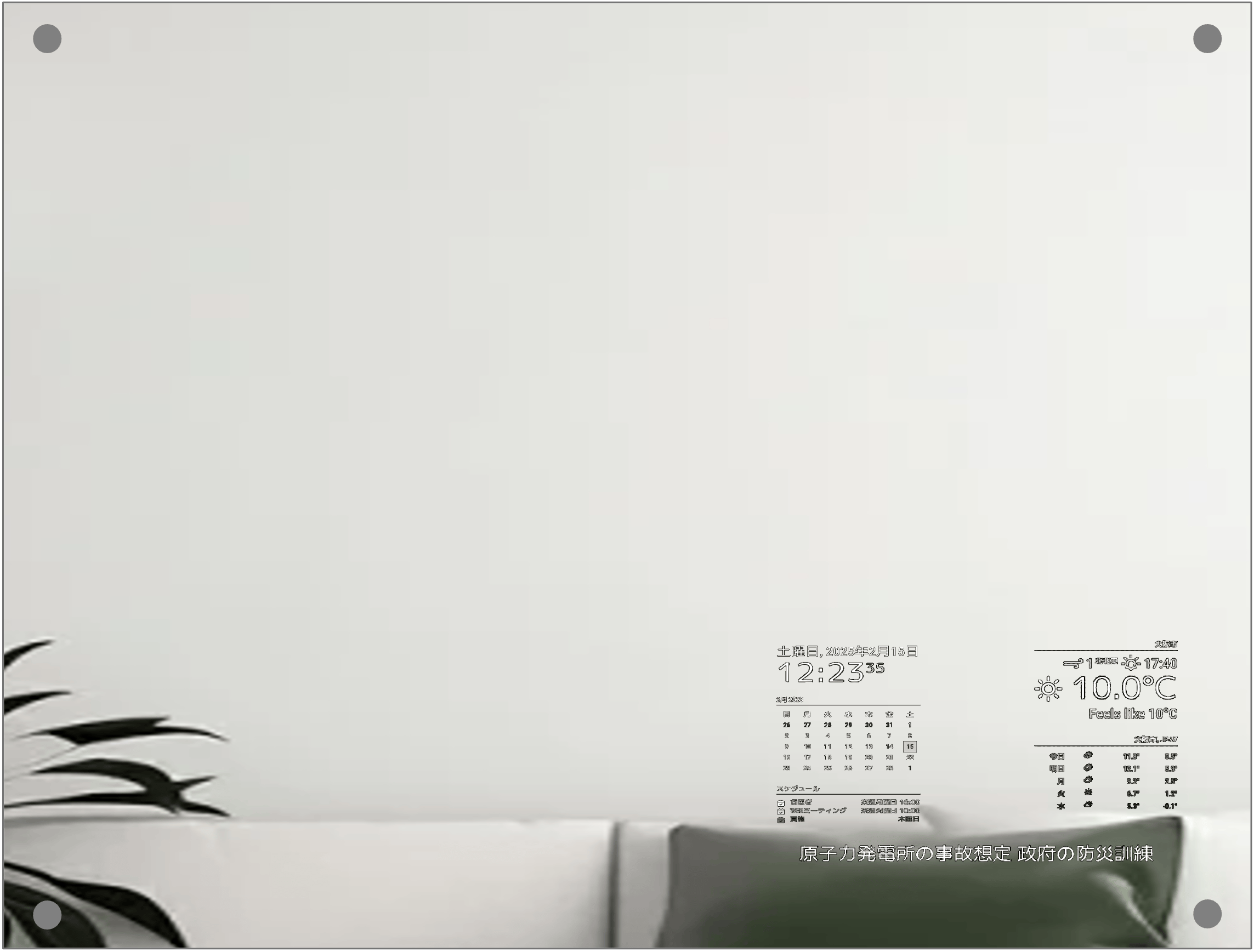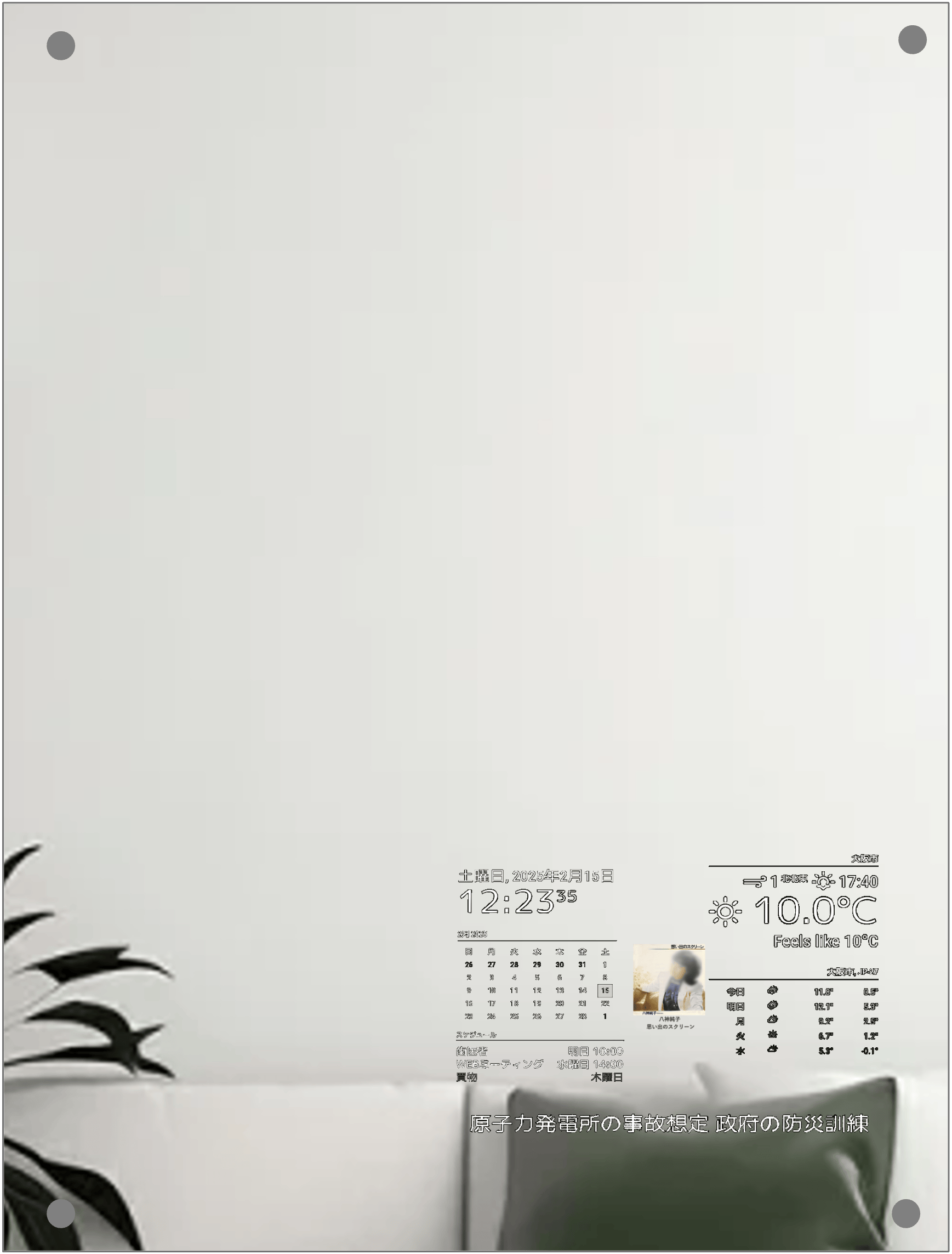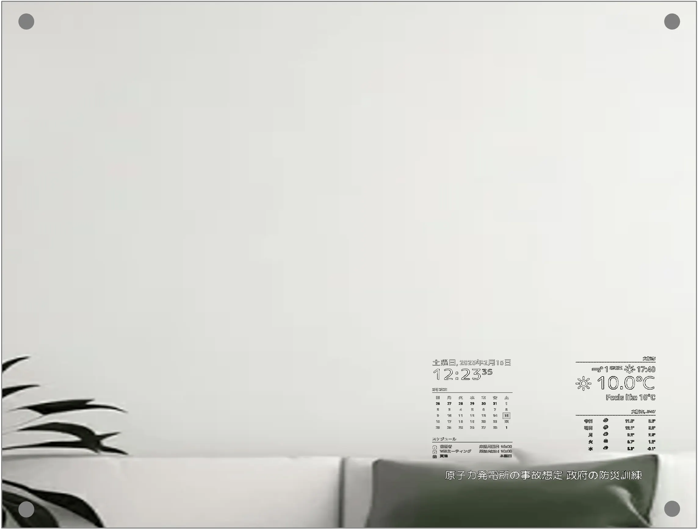 現在時刻、1ヶ月カレンダー、スケジュールを表示します。
