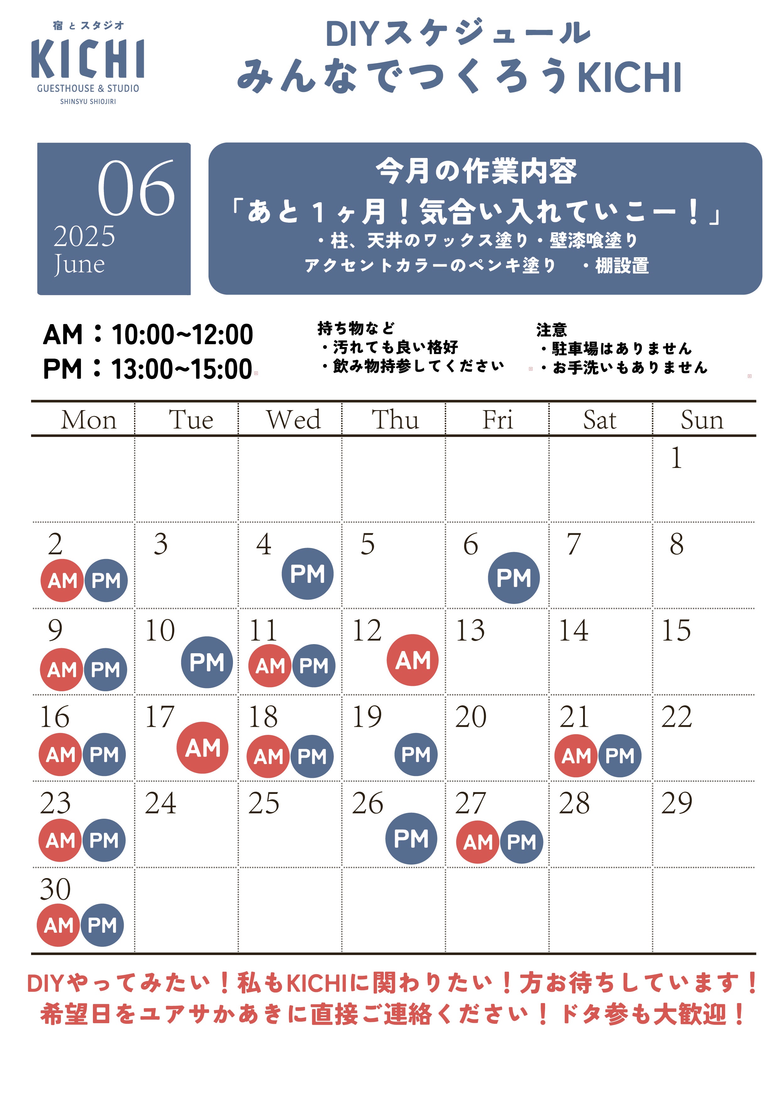 6月の実施スケジュールを添付しますので、ご都合に合わせてご参加いただけましたらありがたいです!