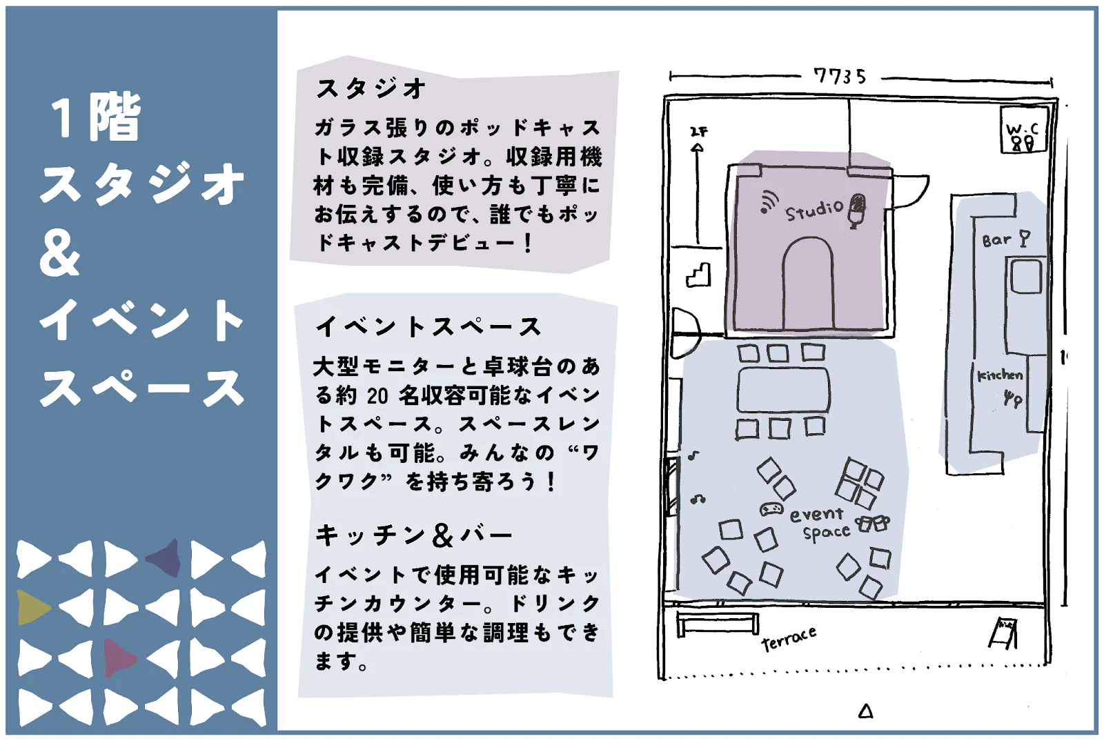 ゲストハウスも、ポッドキャストスタジオも、人が集まってたくさん話をし、つながりが深まって、あたたかく、元気になって、それが地域の元気にもなっていく。そんな場所だと思います。