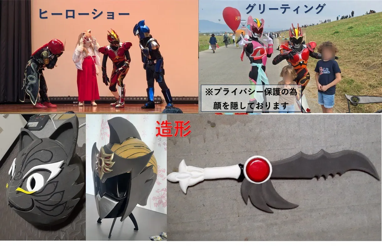 ・ヒーローショー、グリーティング、衣装製作・造形、イベント企画、グッズ製作・販売、店舗PR、町おこし、キャラクターデザイン