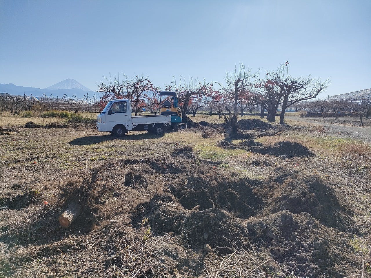 2026/01/08 15:20バックホーをレンタルしました!免許取って以来、初めての操縦慣れないながらもなんとか伐根作業を行いました時間が限られてるのでとにかく引っこ抜く!掘り起こしてあればバックホー返却した後でもどうにかできる・・・ということで、どんどん進めます!最大の敵、柿の伐根ができました もっと見る