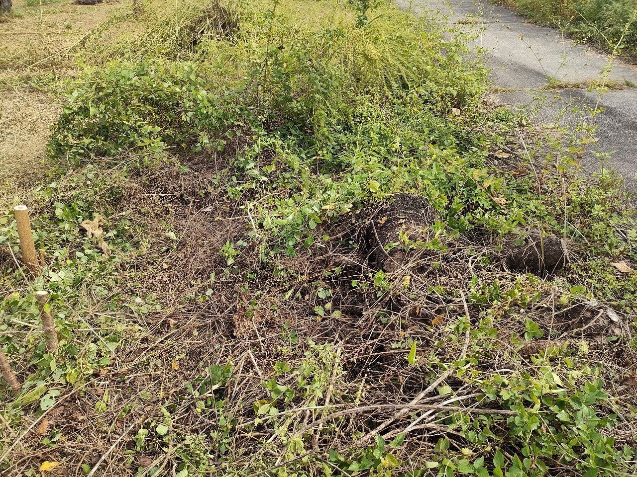地道に撤去し、、トゲトゲのツルも除去し、、桑の木とか山桜の木も伐採して