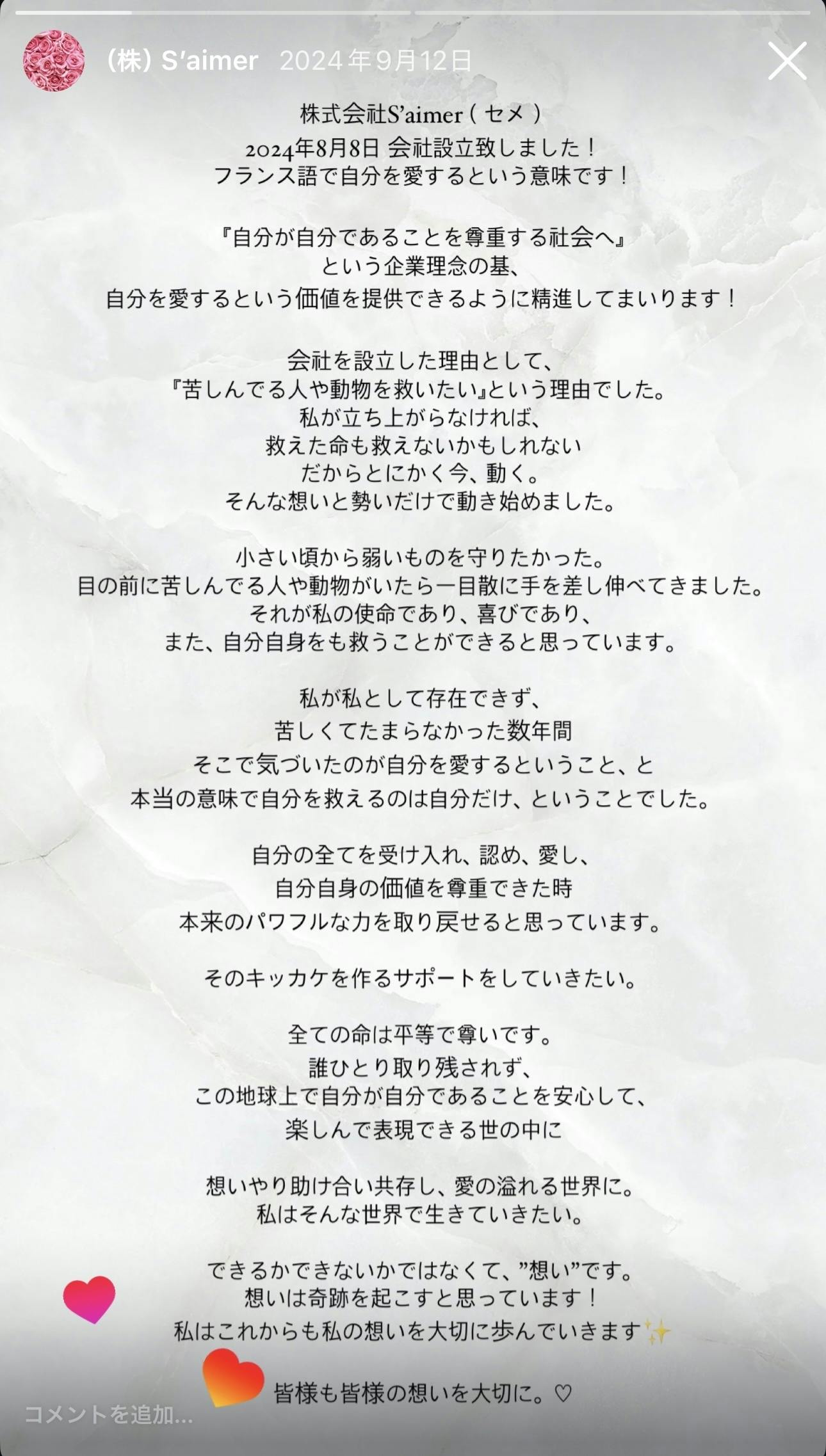 2025/05/03 19:52このたび、S’aimerが多くのメディアに取り上げられましたことをご報告いたします。皆様からの温かいご支援とご関心のおかげで、下記のメディアにて紹介される運びとなりました。■ 掲載メディア一覧✔︎ PR TIMES様https://prtimes.jp/main/html/rd/p/000000001.000160449.html✔︎ 美ST(ビスト)様https://be-story.jp/prtimes/165691/✔︎ Exciteニュース様https://www.excite.co.jp/news/article/Prtimes_2025-04-08-160449-1/✔︎ livedoorニュース様https://news.livedoor.com/pr_topics/detail/28512446/✔︎ サードニュース様https://news.3rd-in.co.jp/article/d2d37a74-140f-11f0-b86c-9ca3ba083d71#gsc.tab=0✔︎ Ladytopi様https://news.ladytopi.jp/article/f39120e8-1411-11f0-b035-9ca3ba08d54b#google_vignette✔︎ Jocee NEWS様https://news.jocee.jp/article/1f41b168-1411-11f0-83ac-9ca3ba0a67df#google_vignette✔︎ Beauty Post様https://beautypost.jp/349449/✔︎ 繊研新聞社様https://senken.co.jp/prtimes/aHR0cHM6Ly9wcnRpbWVzLmpwL21haW4vaHRtbC9yZC9wLzAwMDAwMDAwMS4wMDAxNjA0NDkuaHRtbA==このように多くのメディアに取り上げていただけたのも、ひとえに皆様のご支援とご声援のおかげです。引き続き、皆様にとって価値ある活動となるよう、心を込めて取り組んでまいります。今後とも変わらぬ応援を、どうぞよろしくお願いいたしますまた、お問合せに関しましてはm-abe@saimer.co.jpこちらまで、よろしくお願い致します。 もっと見る