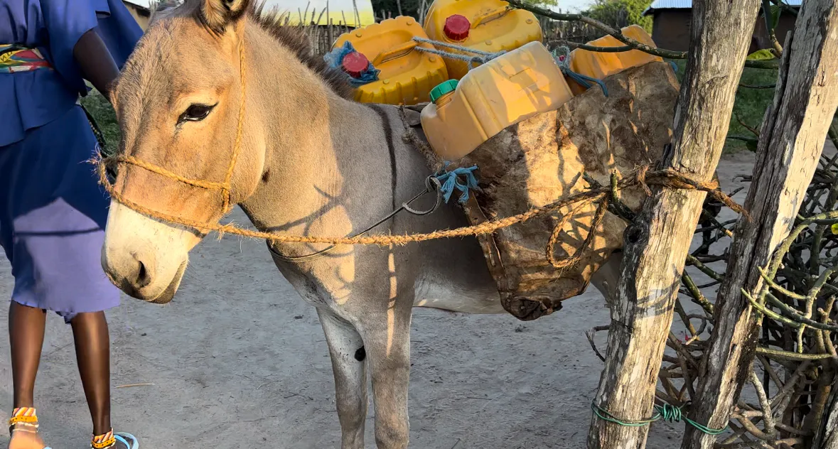 水汲みは女性と子供の仕事です、1つ20Lのタンクを4つ、1頭のロバに乗せて運びます。