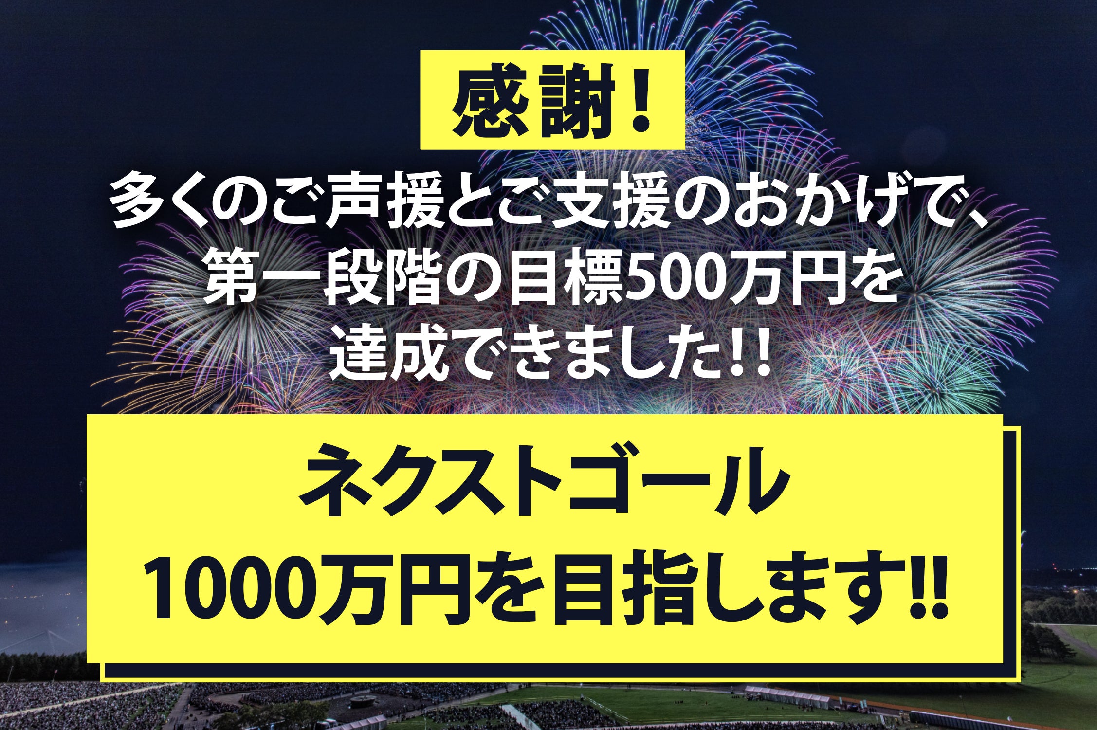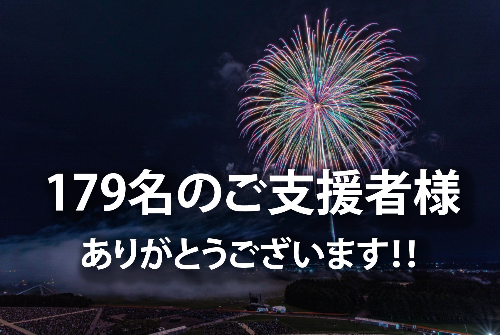 【すでにご支援いただきました皆様で、"芸術花火チケット付き"のリターンをお選びいただいた方へ、補足のご連絡です。】皆様ご支援いただき誠にありがとうございます。「北海道芸術花火2025」「東北未来芸術花火2025」「大阪芸術花火2025」につきまして、荒天等によりイベントが中止となった場合の対応についてご案内いたします。上記の公演が中止となった場合は、チケット代金相当額をご返金(クラウドファンディング手数料を除く)させていただきます。返金方法など詳細については、万が一中止となった際に改めてご連絡差し上げます。なお、リターン文章には記載がございませんでしたので、こちらで補足させていただきます。どうぞご了承のほどよろしくお願いいたします。※途中終了の場合は、払い戻しはいたしません。===== 対象リターン =====●「北海道芸術花火2025」芝生席チケット単券(¥15,000)●「北海道芸術花火2025」最前プレミアム椅子席チケット単券(¥20,000)●「北海道芸術花火2025」最前プレミアム椅子席チケット(ペア/駐車券つき)(¥44,000)●協賛者様(¥100,000)●協賛者様(¥200,000)●協賛者様(¥300,000)●協賛者様(¥500,000)●協賛者様(¥1,000,000)●協賛者様(¥1.500,000)
