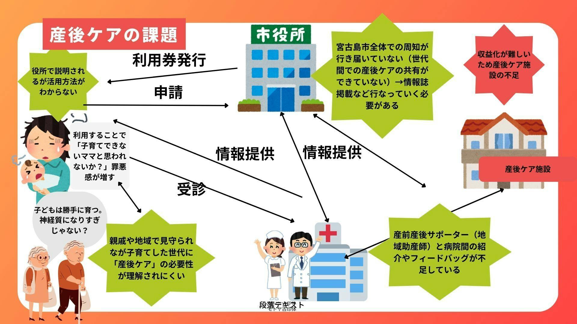⑤に関しては病院、産前産後サポーターの間で、もっと連携を密に取ってママたちが利用したい時にすぐ産後ケアを活用できるよう、協議を行って切れ目ない支援をしていきたいと思っています。
